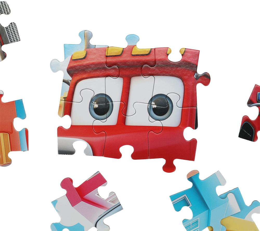 Данный пазл представляет собой игру-головоломку, в которой необходимо в правильной последовательности соединить элементы друг с другом и получить в результате красочную картинку с изображением весёлого мультяшного грузовика.