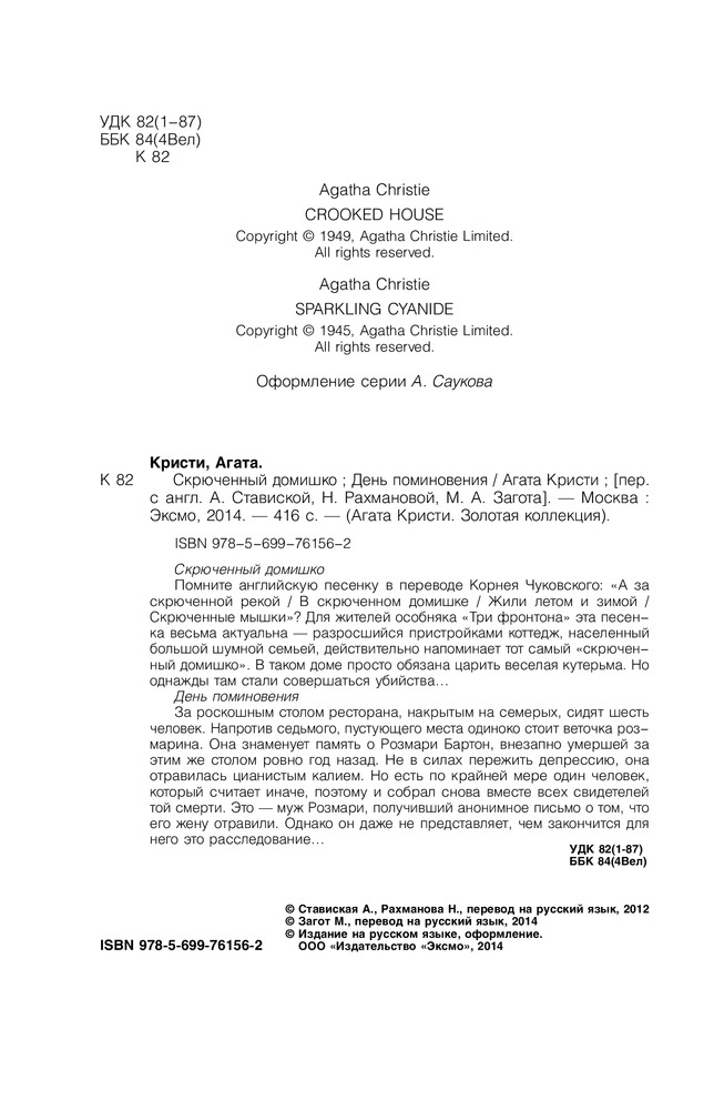 В данный момент этот товар отсутствует в продаже. Возможно, у нас найдется аналогичный или похожий товар здесь. Серия: Агата Кристи. Золотая коллекция "Скрюченный домишко".