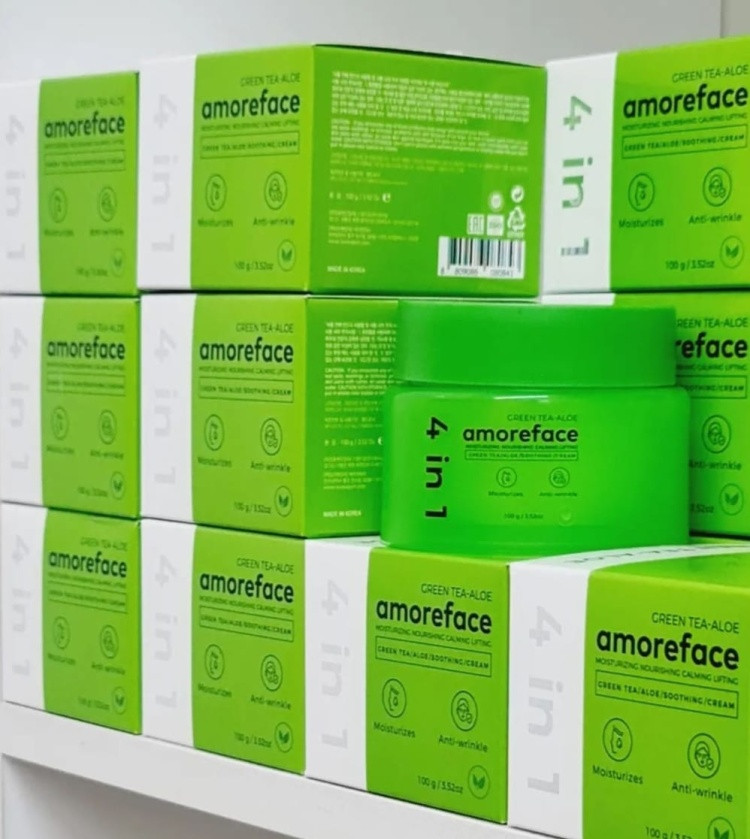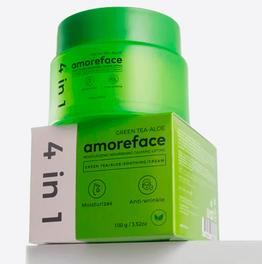Amore Face Успокаивающий крем для лица с экстрактом зелёного чая и алоэ «4 In 1 Green Tea-Aloe Soothing Cream»