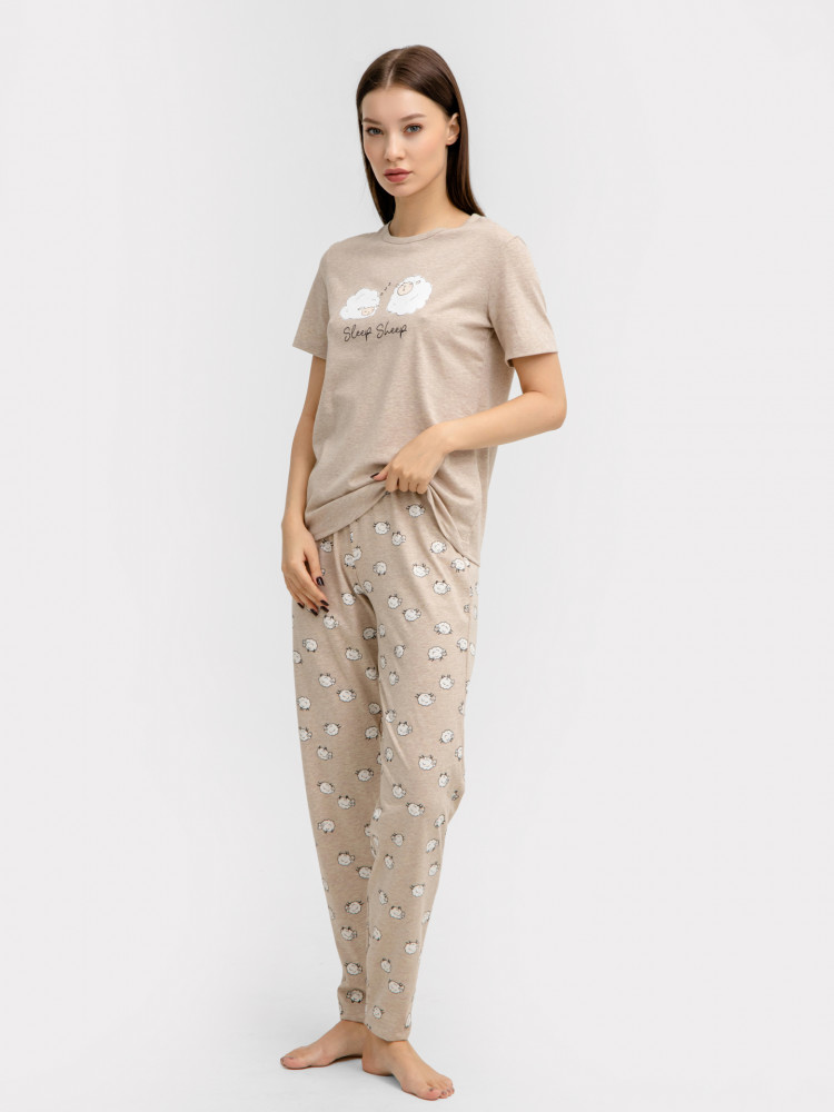 Название цвета: бежевый меланж + овечки на бежевом меланже