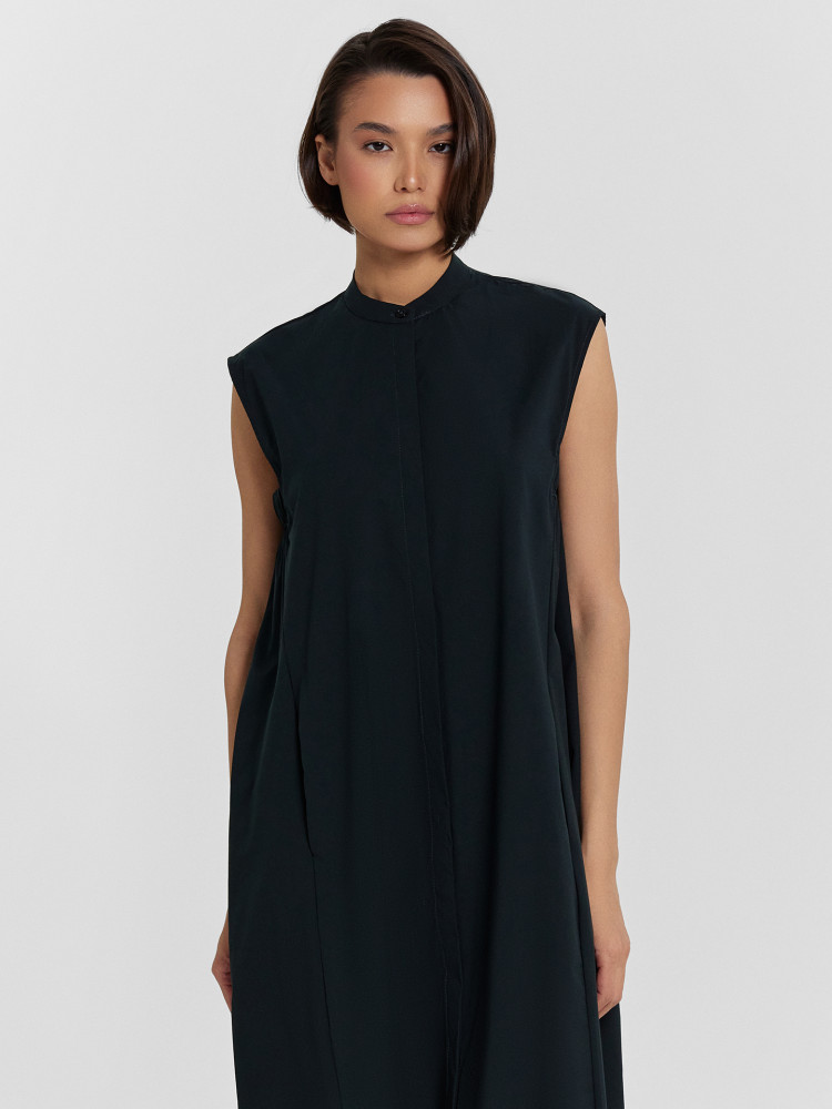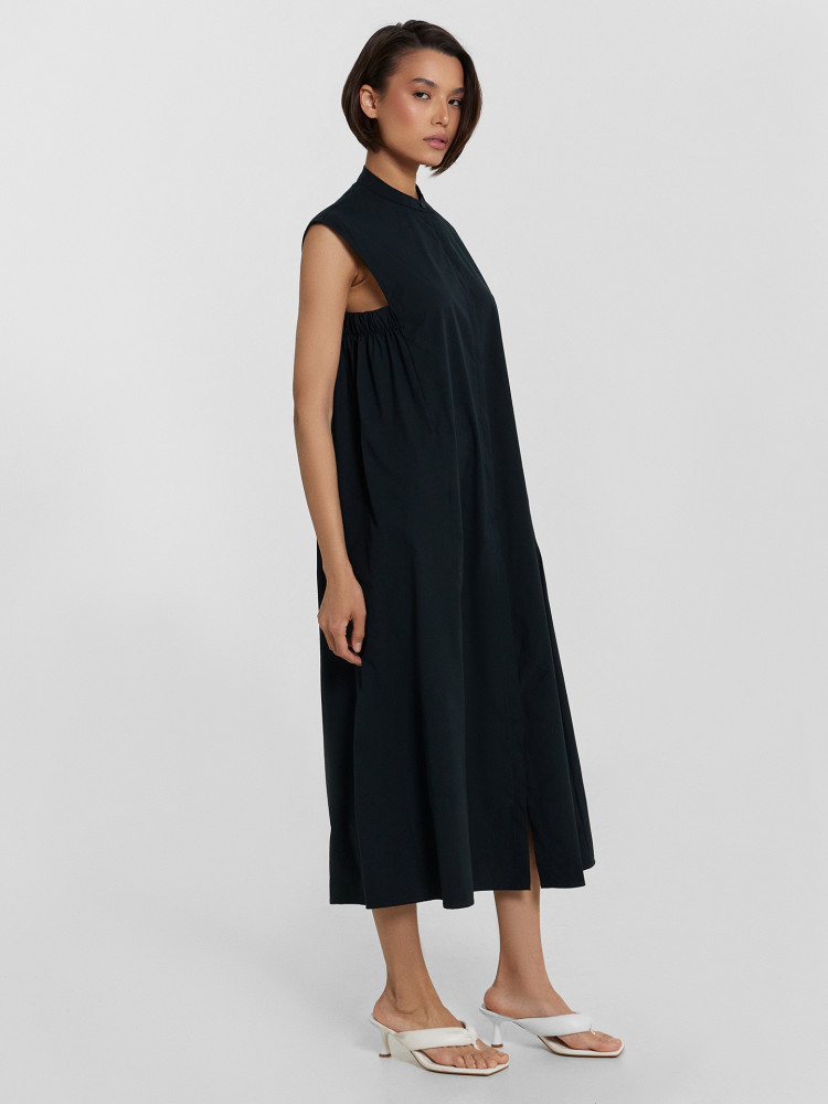 симпатичное платье в стиле сафари, но для 44 размера, купленного на 46 размер, пройма великовата и болтается. Наверное, можно ушить, так как снизу она на широкой резинке.
