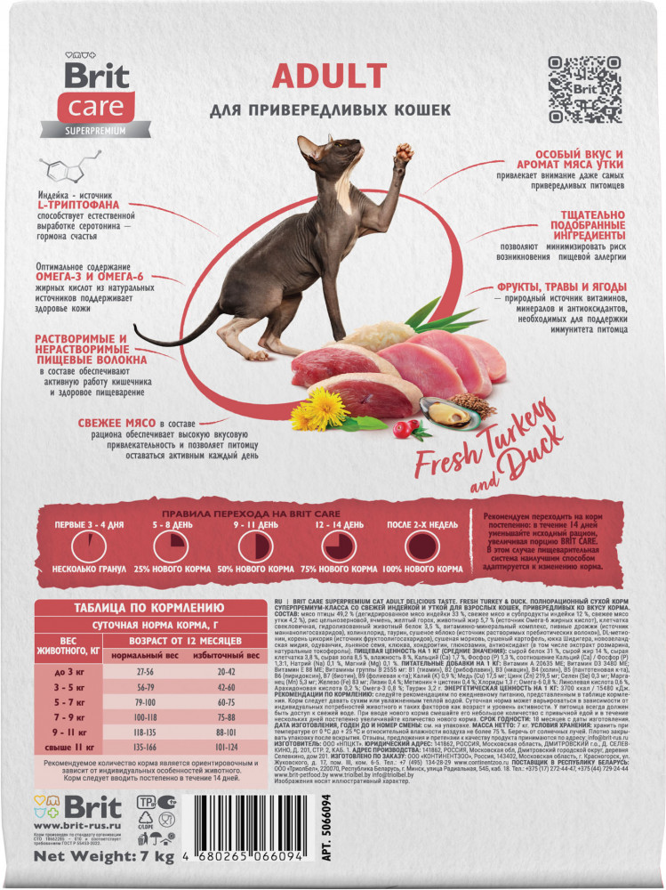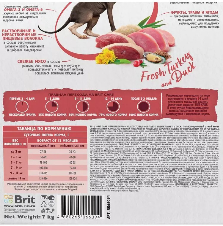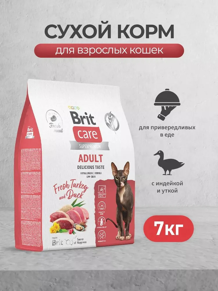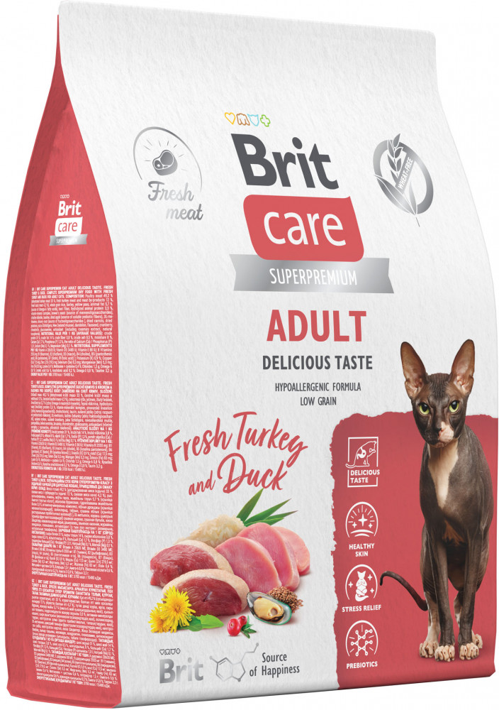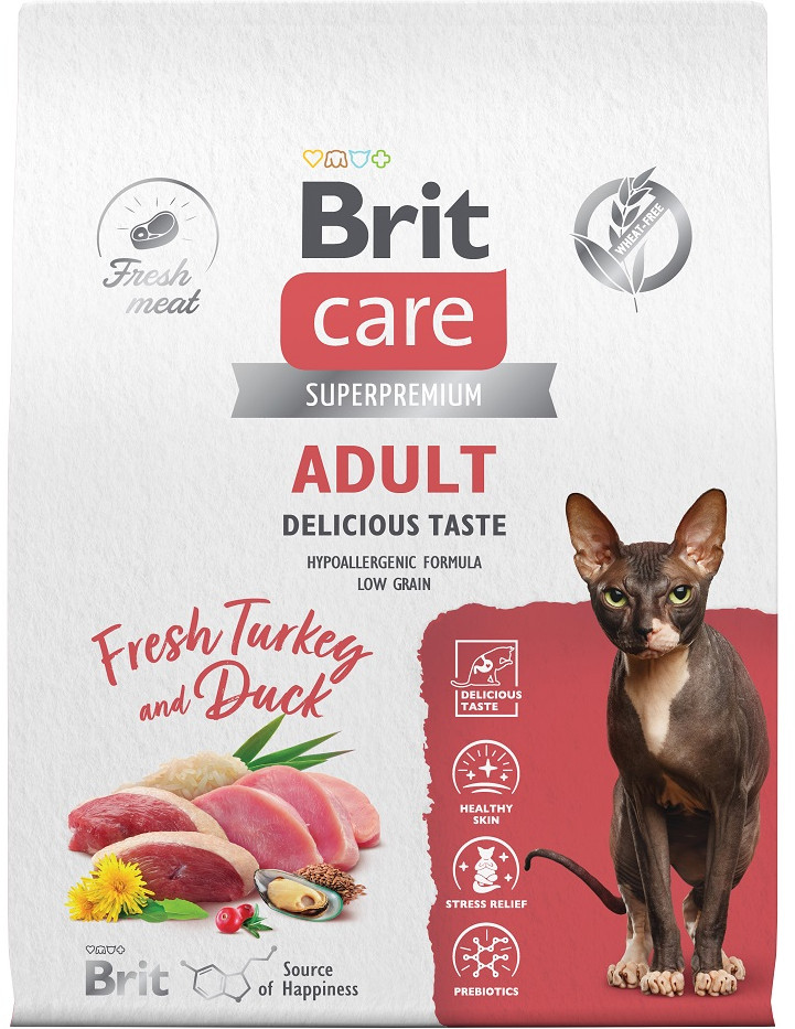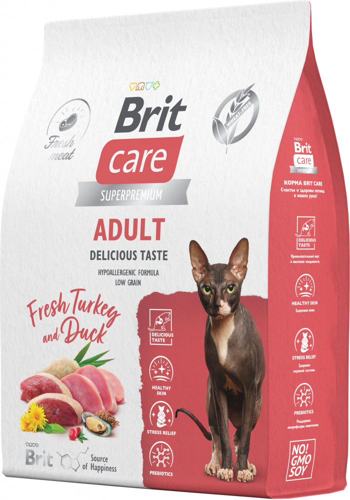 Brit Корм сухой для взрослых привередливых кошек с индейкой и уткой «Cat Adult Delicious Taste»