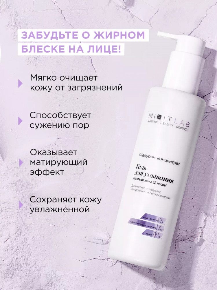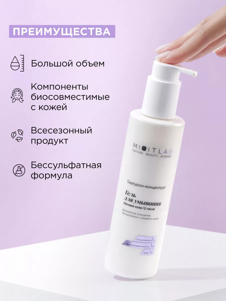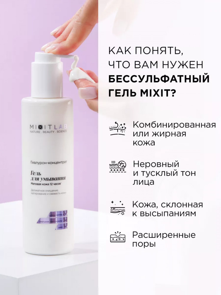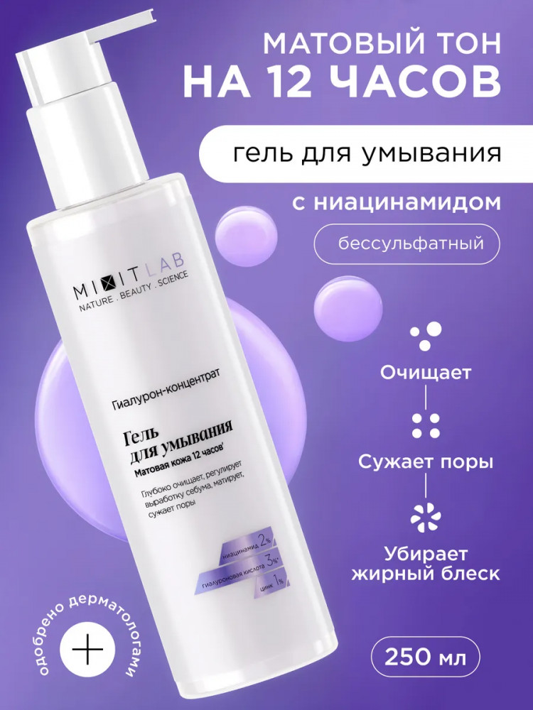 Mixit Гель для умывания с ниацинамидом и цинком для жирной кожи «Hyaluron Matte Skin Cleansing Gel»