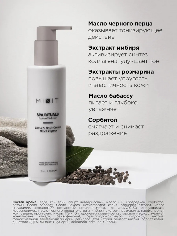 Mixit Крем для тела и рук парфюмированный с ароматом черного перца «Hand & Body Cream Black Pepper»