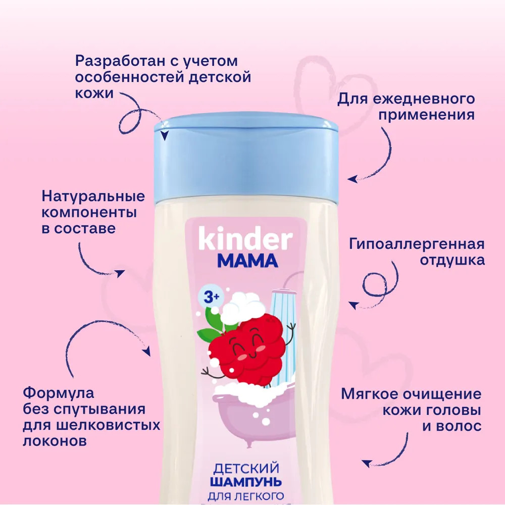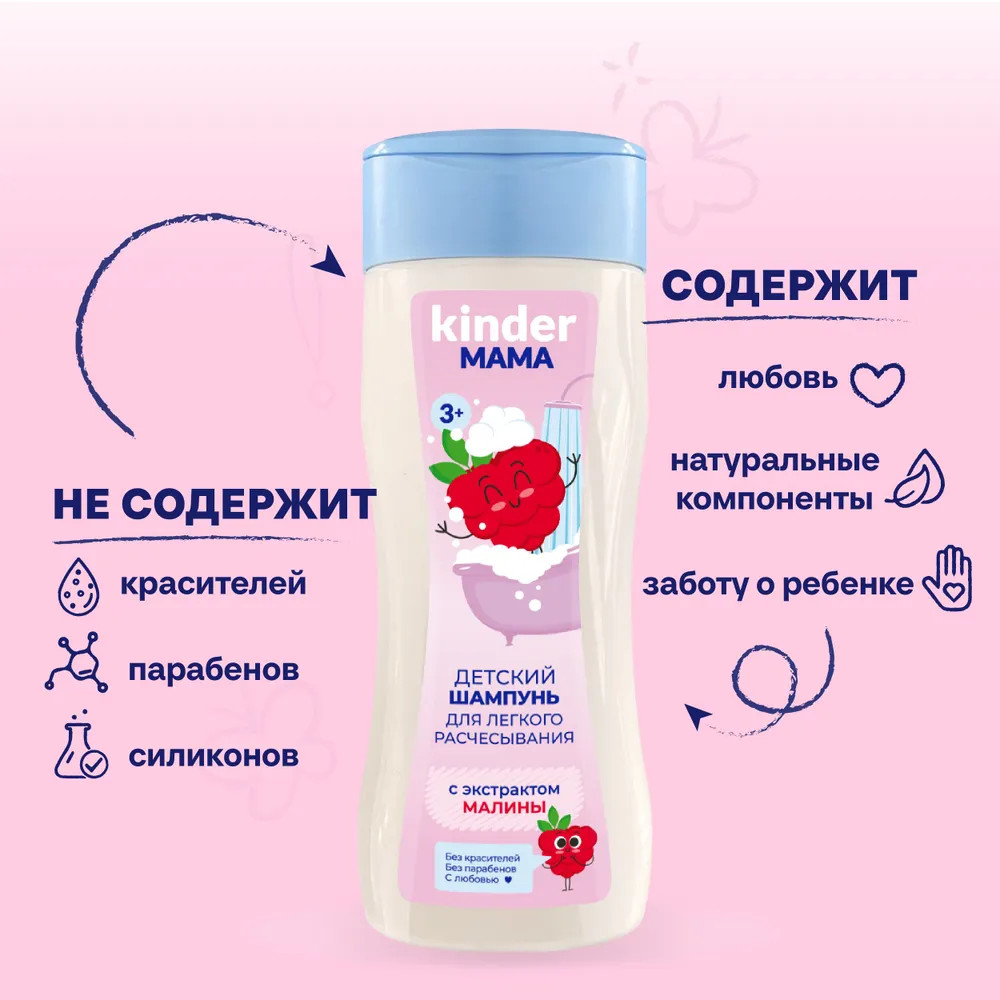 Биокон Шампунь для легкого расчесывания детский с экстрактом малины «Kinder Мама»