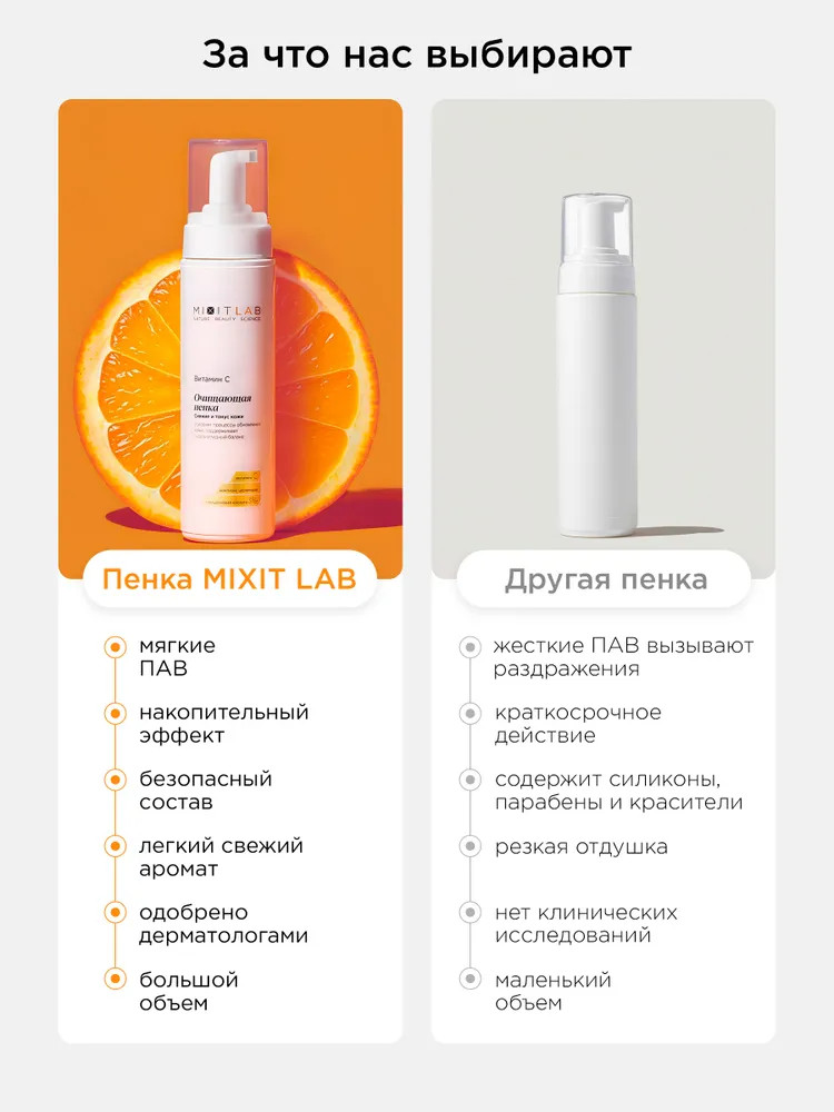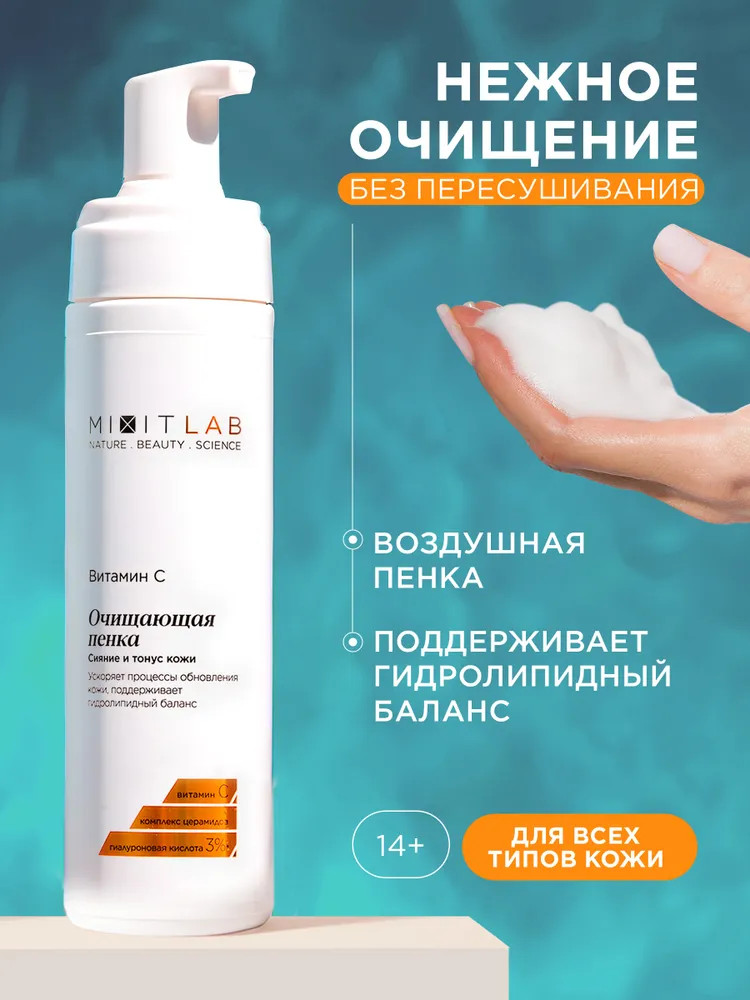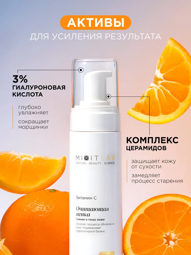 Mixit Пенка с витамином С и церамидами для всех типов кожи очищающая «Сияние и тонус. Vitamin C Radiance Cleansing Foam»