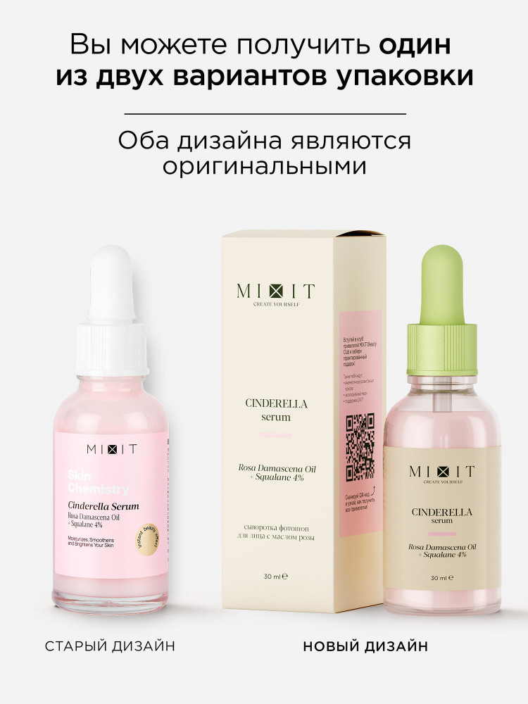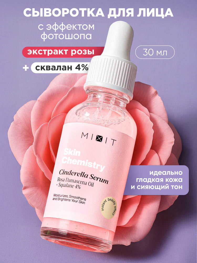 Mixit Сыворотка-фотошоп для лица увлажняющая с маслом дамасской розы и скваланом «Cinderella Serum»