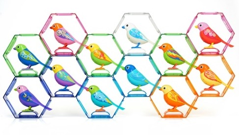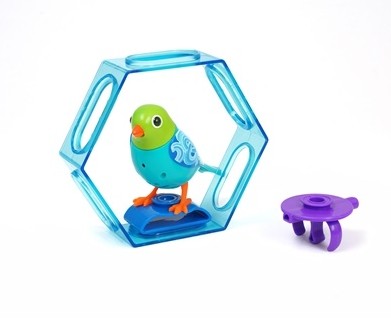Ребенку можно приобрести и других птиц из этой же серии, шестиугольные пьедесталы легко собираются между собой в одну конструкцию, и тогда интерактивные игрушки начинают петь хором.