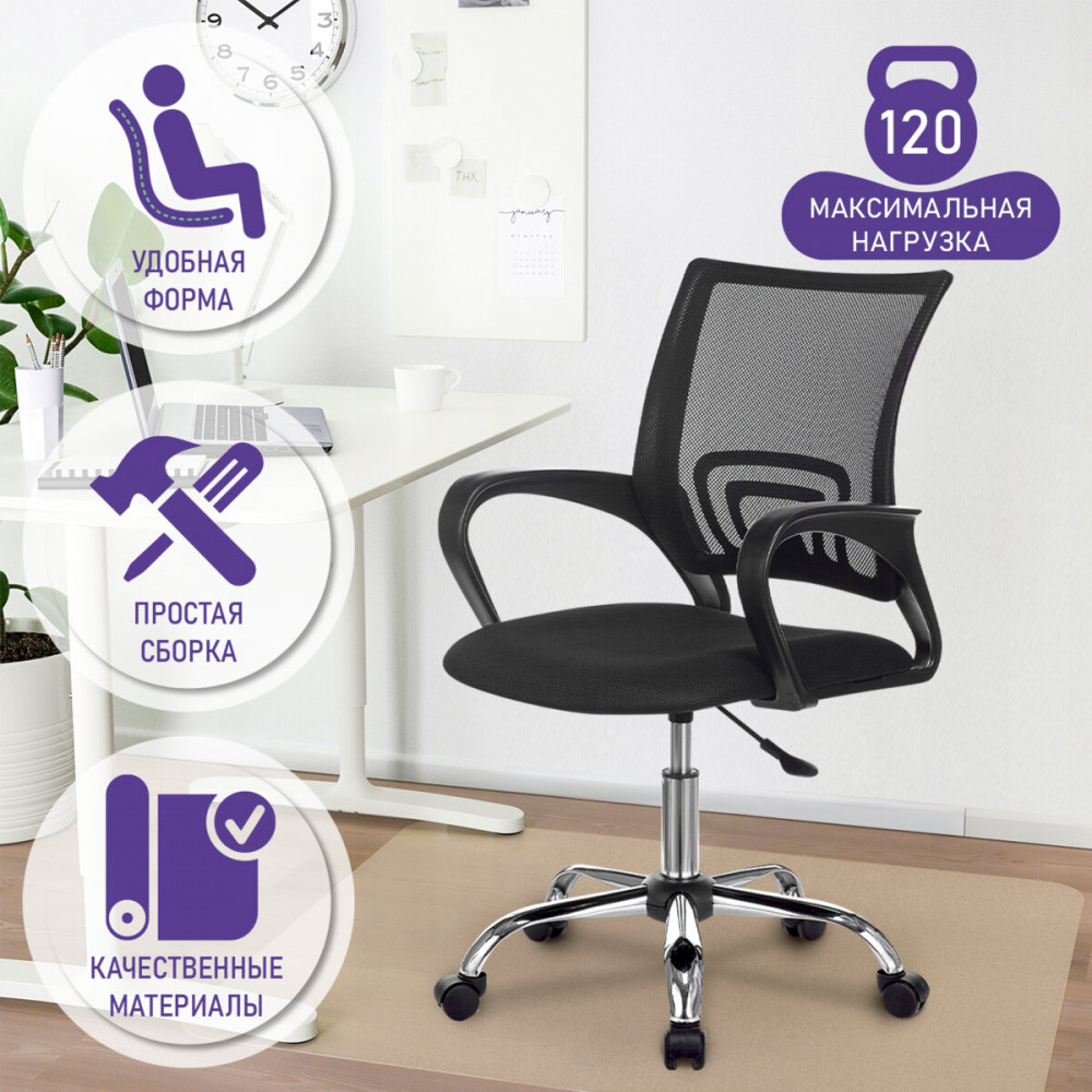 Brabix «Fly MG-396» — доступное, качественное кресло с эргономичной сетчатой спинкой. Прекрасный вариант для повседневной работы в офисе и дома. Спинка выполнена из прочного материала — акриловой сетки и имеет выраженную поясничную поддержку, обеспечивающую комфортную посадку в течение всего рабочего дня. Ткань TW обладает высокой воздухопроницаемостью и прочностью, практически не истирается. Наполнитель сиденья — утолщенный поролон средней жесткости. Хромированное металлическое пятилучие способно выдержать нагрузку до 120 кг! Модель оснащена регулировкой по высоте посадки. Неприхотливая модель для дома и офиса среднего ценового сегмента.