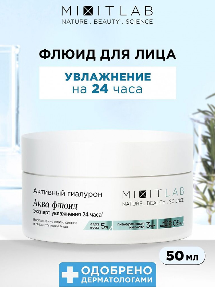 Mixit Аква-флюид с алоэ и гиалуроновой кислотой для сухой кожи лица «Hyaluron Fluid»