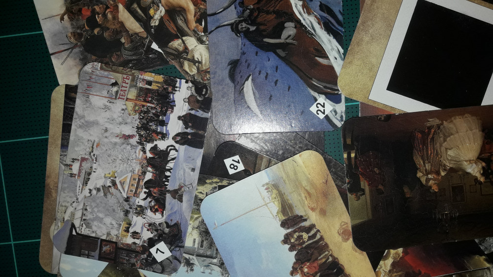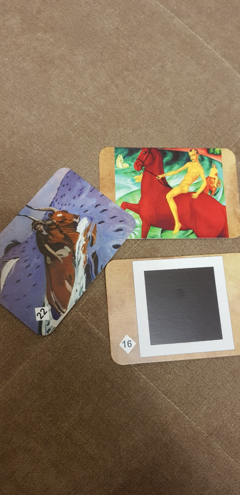 Мне не понравилось мое приобретение. Сама игра хорошая и качество бумаги отличное, но цвета все мрачные. Получаются практически все карточки в грязно-коричневой и грязно-синей гамме. Настоящие картины выглядят явно не так мрачно, думаю проблема в печати. Если бы увидела в натуре, никогда бы не купила.