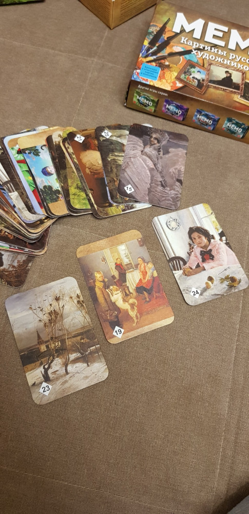 Отличная игра. В детстве знала всех художников и их картины, а сейчас память подводит. Благодаря этой игре постепенно все вспоминаю. И еще хочу отметить качество карточек.