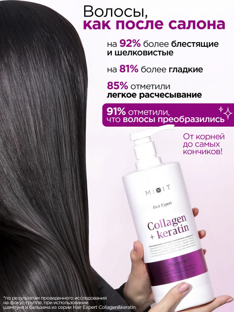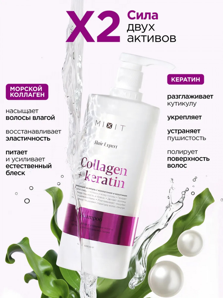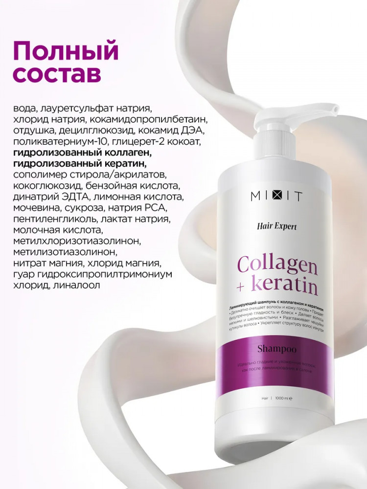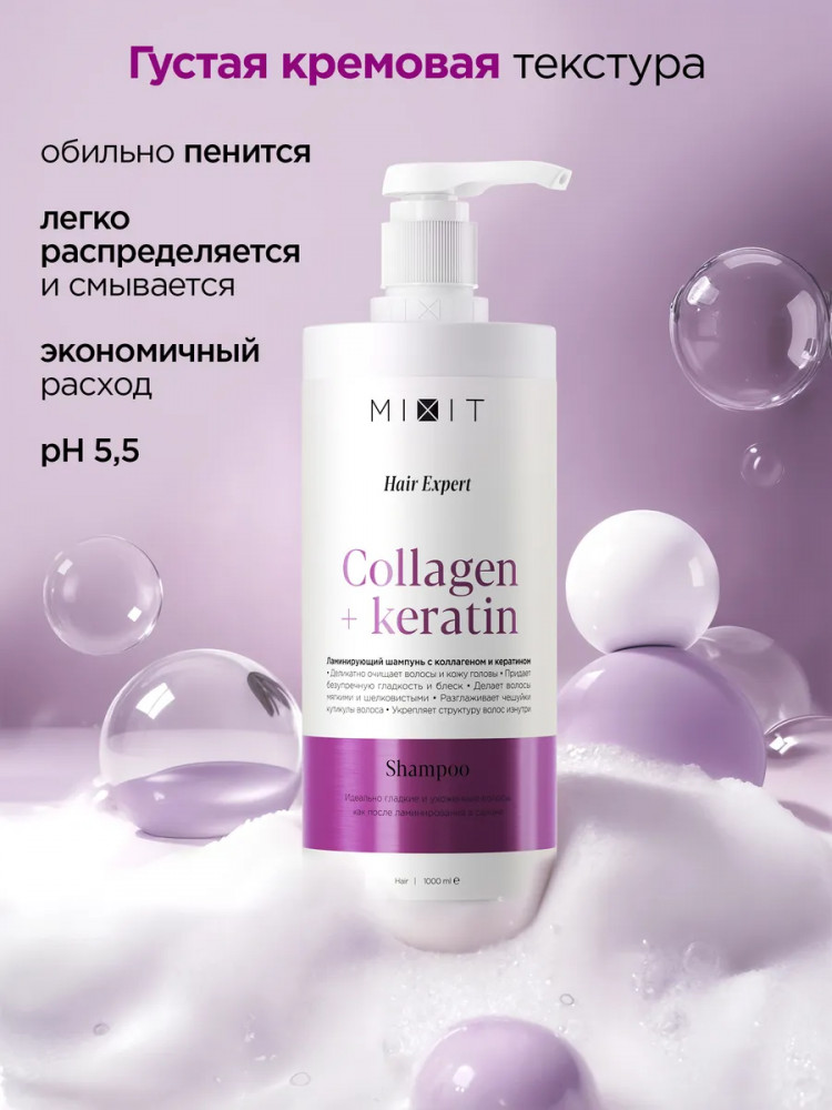 Mixit Шампунь для волос с коллагеном и кератином ламинирующий «Shampoo Collagen & Keratin»
