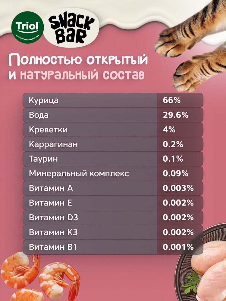 Triol Лакомство для кошек «Крем из курицы с креветкой»