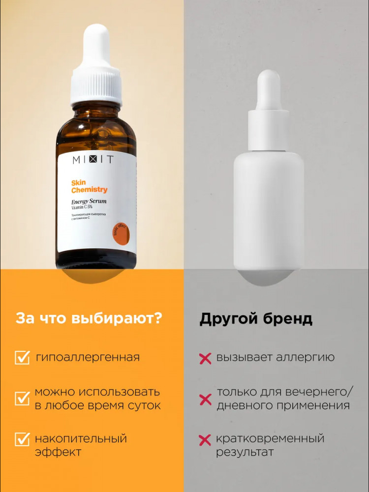 Mixit Сыворотка для лица тонизирующая с витамином С «Energy Serum Vitamin C 5%»