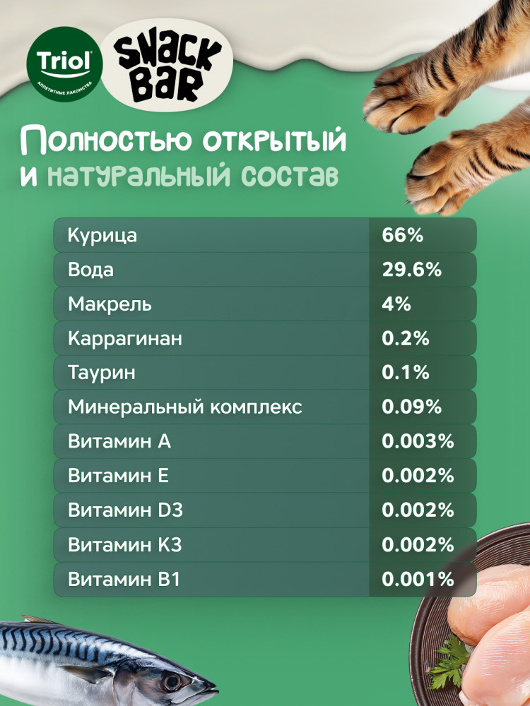 Triol Лакомство для кошек «Крем из курицы с макрелью»