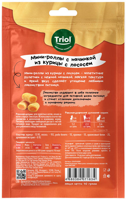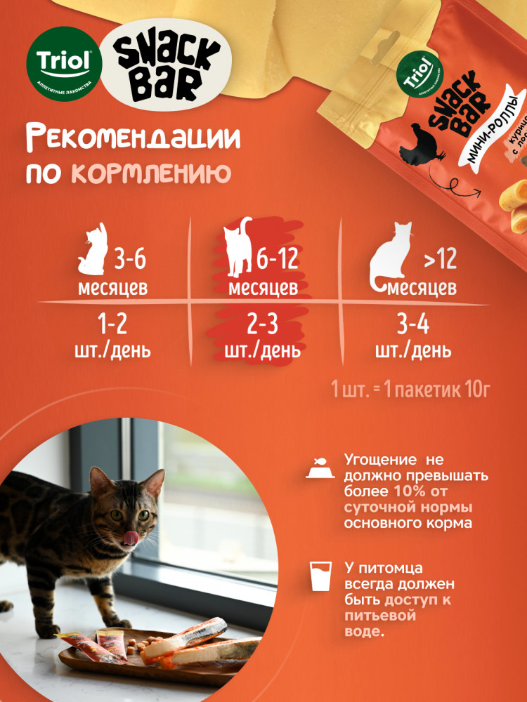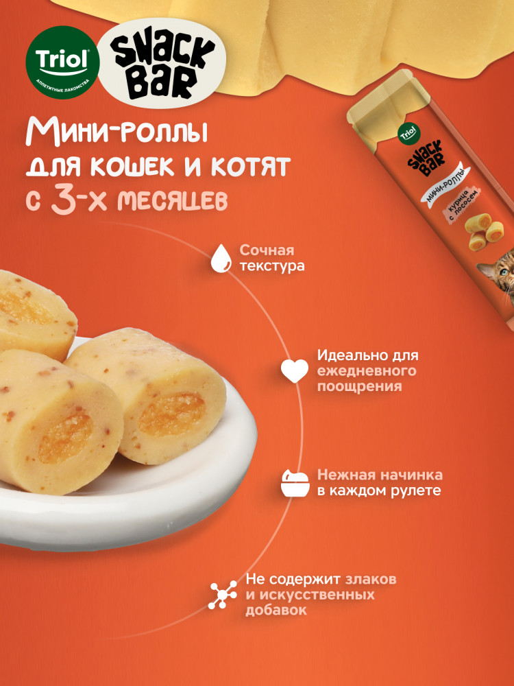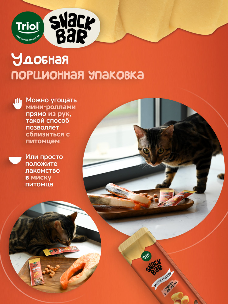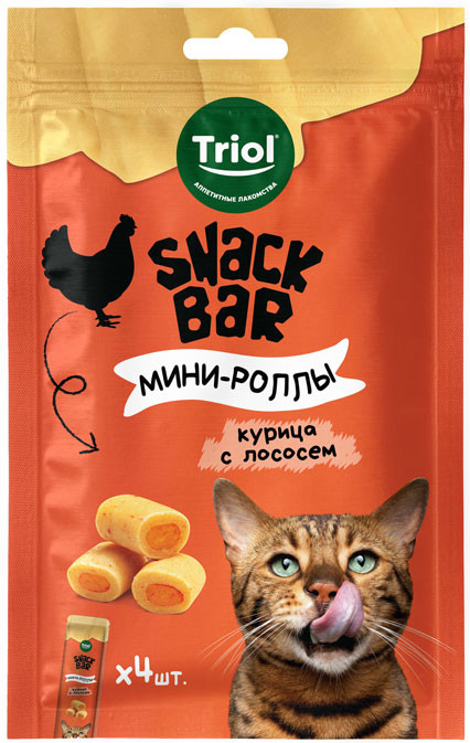 Triol Лакомство для кошек «Мини-роллы с начинкой из курицы с лососем»