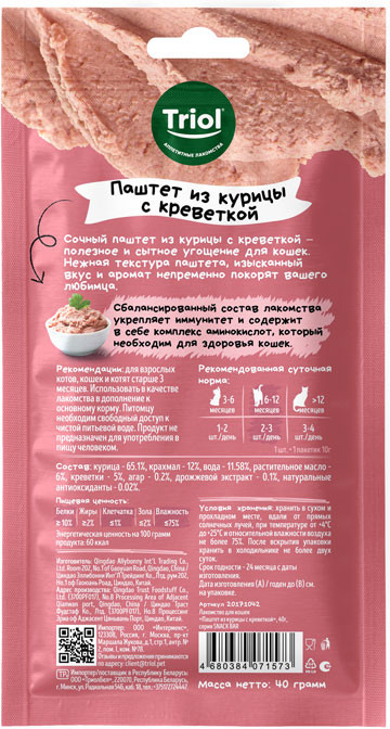 Triol Лакомство для кошек «Паштет из курицы с креветкой»