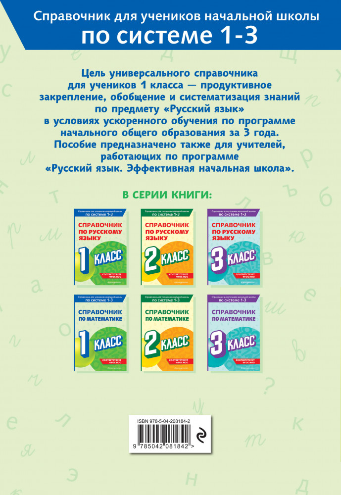 💳 Оплатить за товар можно при получении 🇰🇿 Есть бесплатная доставка по Казахстану от 1 дня 🎁 Копите бонусы с каждой покупки Серия: Справочник для учеников начальной школы по системе 1-3 Справочник предназначен для младших школьников, обучающихся по ускоренной трёхлетней программе или по индивидуальному плану, а также для преподавателей, работающих по программе «Эффективная начальная школа». Главное требование к справочникам для учеников начальных классов — краткое и понятное изложение учебного материала. В данном пособии предельно доступно, в виде таблиц, схем, правил и примеров их применения, изложен весь курс русского языка за 1 класс по программе трёхлетнего обучения. Такая подача материала позволяет быстро найти нужную учебную информацию, основательно повторить и надёжно запомнить её. Современное и удобное в использовании пособие разработано в полном соответствии с требованиями ФГОС начального общего образования. |