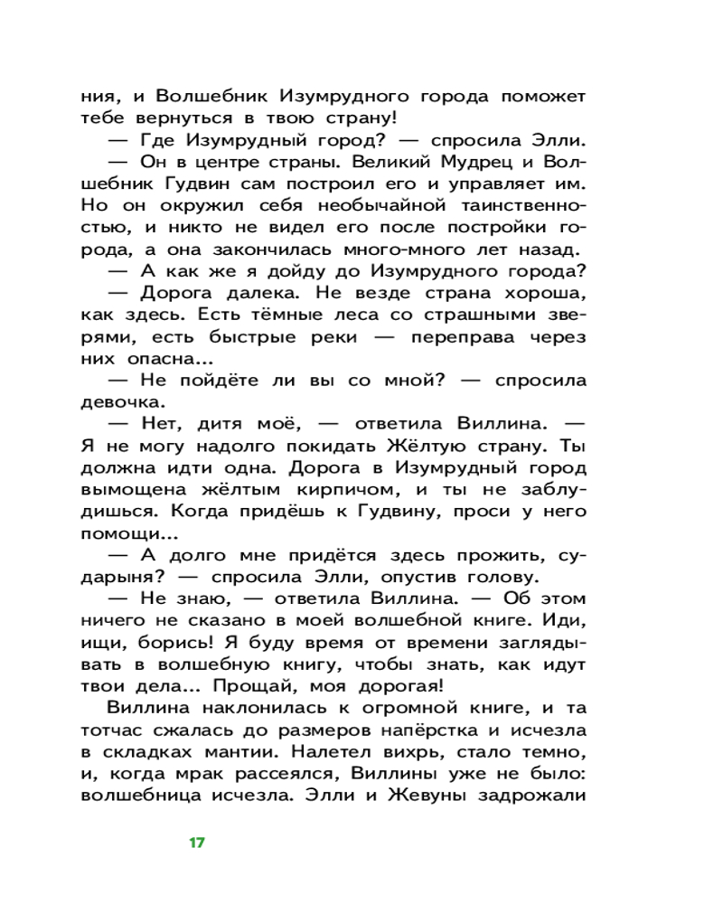 💳 Оплатить за товар можно при получении 🇰🇿 Есть бесплатная доставка по Казахстану 🎁 Копите бонусы с каждой покупки Серия: Пломбир. Классика в школе Девочку Элли из Канзаса с собакой Тотошкой уносит ураган прямо в ее домике. В стране Жевунов дом случайно падает на Злую Волшебницу и побеждает ее. Элли встречает добрая Волшебница Виллина, которая советует ей обратиться за помощью к Великому Гудвину, живущему в Изумрудном городе, чтобы вернуться домой. Элли надевает волшебные серебряные башмачки, оставшиеся от Злой Волшебницы, и отправляется в путь. На своем пути Элли встречает несколько новых друзей. Первый — это Страшила, который хочет получить мозги, следом — Железный Дровосек, мечтающий обрести сердце, и Трусливый Лев, желающий стать храбрым. Все вместе они решают отправиться в Изумрудный город, надеясь, что Великий Гудвин исполнит их желания. |