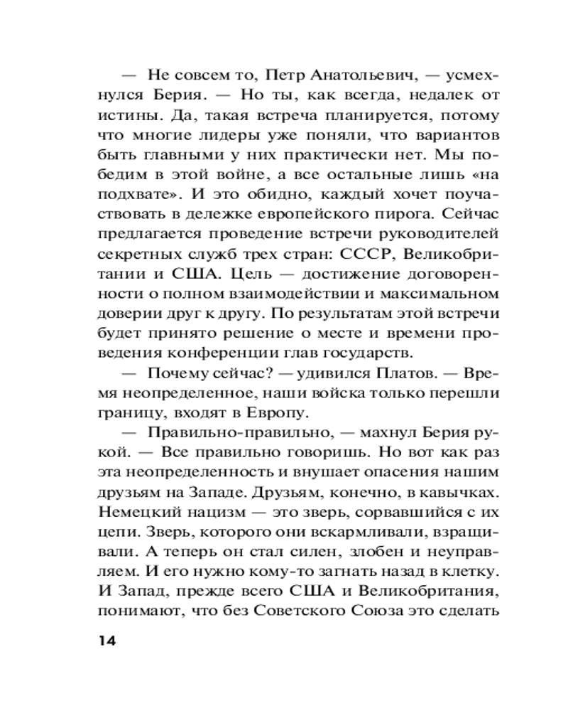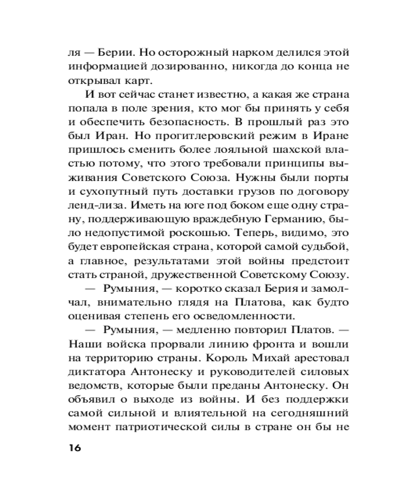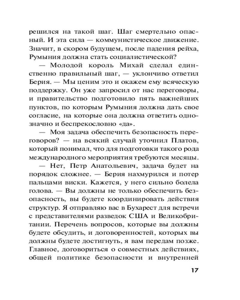 💳 Оплатить за товар можно при получении 🇰🇿 Есть бесплатная доставка по Казахстану от 1 дня 🎁 Копите бонусы с каждой покупки Серия: Спецназ Берии. Герои секретной войны (обложка) 1944 год. В Румынии к власти приходит король Михай Первый. Он разрывает отношения с Гитлером и берет курс на сближение с Советским Союзом. В Бухаресте планируется встреча глав государств антигитлеровской коалиции. Однако фашистские недобитки пытаются сорвать это мероприятие. Будучи хорошо осведомлены о деталях предстоящей встречи, бандиты обстреливают самолет, в котором летят представители советской делегации. Для обеспечения безопасности в Румынию в числе других направляется группа спецназа Максима Шелестова. Помимо прочего, бойцам дано особое задание: выявить и обезвредить засевшего в наших рядах предателя... |