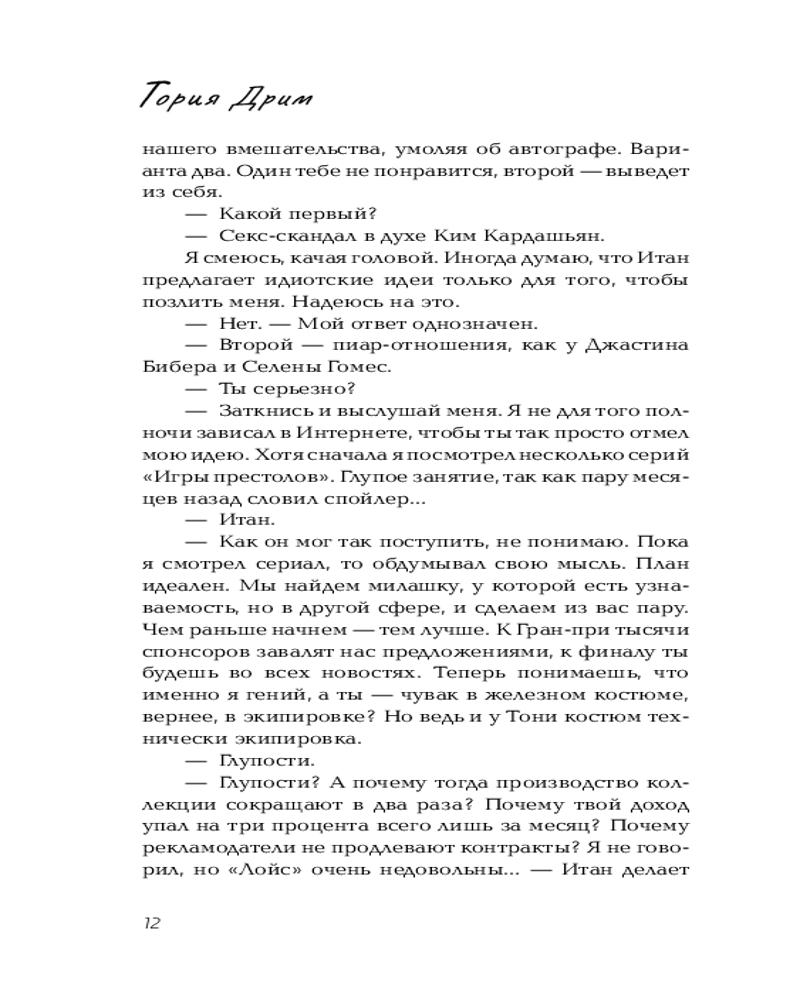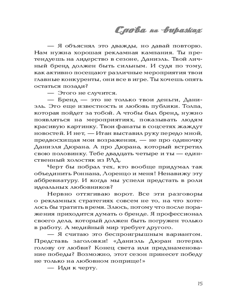 💳 Оплатить за товар можно при получении 🇰🇿 Есть бесплатная доставка по Казахстану от 1 дня 🎁 Копите бонусы с каждой покупки Серия: Sugar Love Даниэль Дюран — гонщик «Формулы-1». После двух победных сезонов он терпит поражение. Чтобы вернуть себе высокие рейтинги и рекламные контракты, он вступает в фейковые отношения с топ-моделью Мией Белароз. Эвелин Грэйвс — личная ассистентка Мии, втайне мечтающая стать писателем. Когда Мия предлагает ей сопровождать ее на гонках Даниэля, она соглашается, еще не зная, чем это для нее обернется. Гонки, сильные чувства и терзающий Даниэля вопрос... Что все-таки станет трофеем: кубок чемпиона или Эвелин Грэйвс, перевернувшая его мир? |