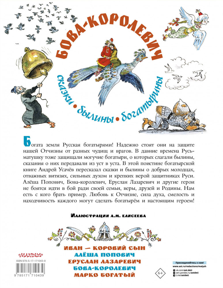 💳 Оплатить за товар можно при получении 🇰🇿 Есть бесплатная доставка по Казахстану от 1 дня 🎁 Копите бонусы с каждой покупки Серия: Самая большая книга (подарочная) В книгу знаменитого писателя и поэта Андрея Усачёва вошли известные сказки и былины о королях, богатырях и других героях русского фольклора! Главные герои этой книги учат детей мужеству, доброте, смелости, находчивости и стойкости. В книге яркие рисунки классика детской иллюстрации Анатолия Елисеева, которые помогут лучше представить себе эпические события и характер героев. |