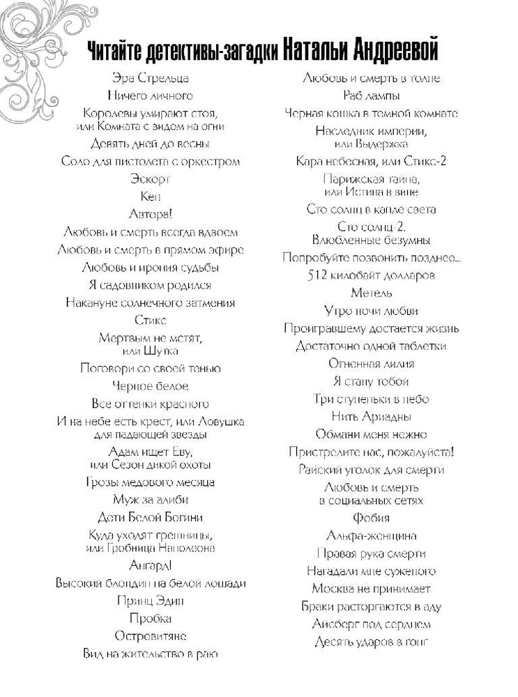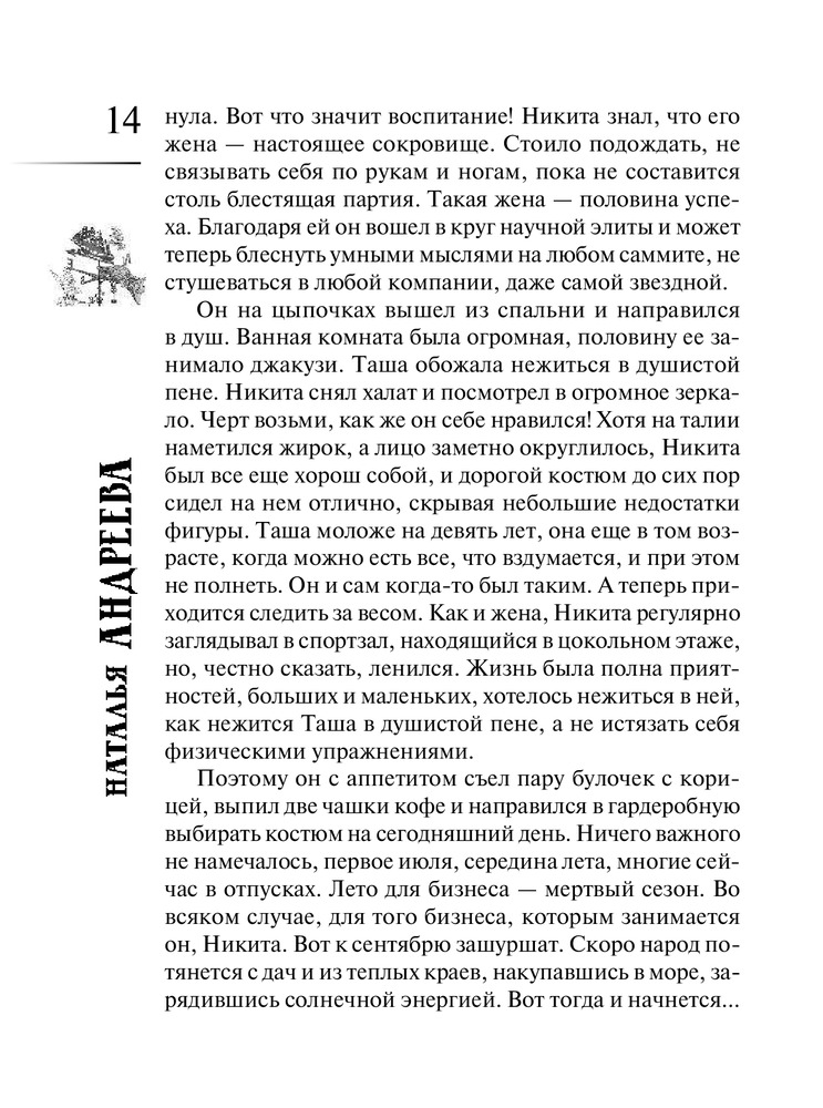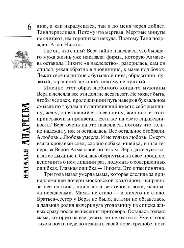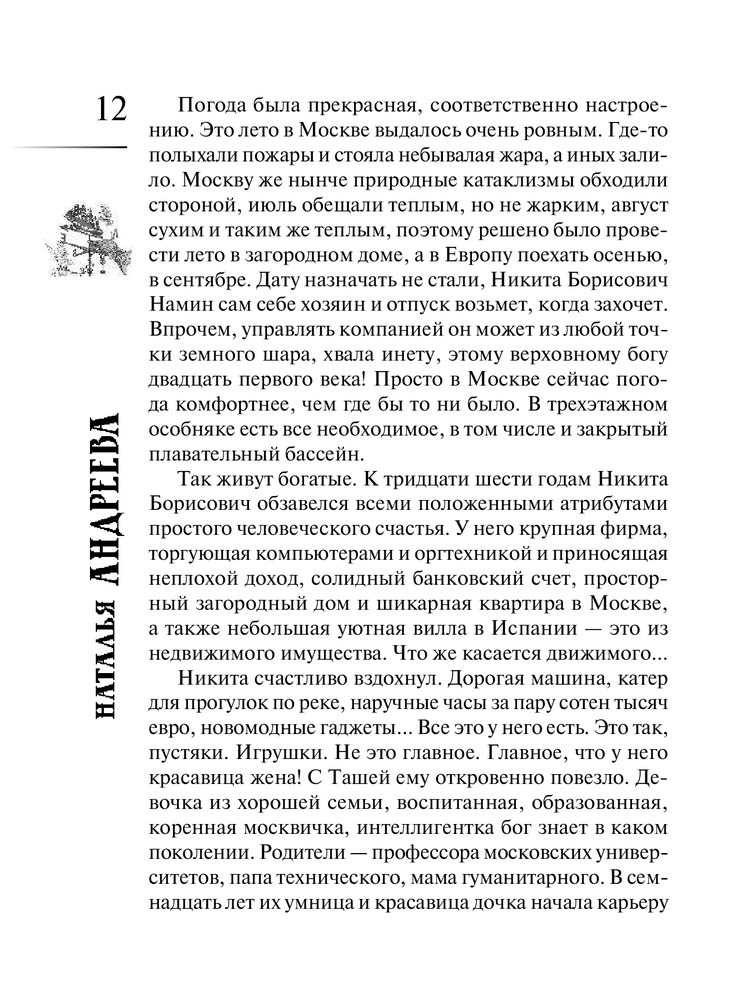 | Наталья Вячеславовна Андреева - российская писательница, автор романов детективного жанра. Родилась в деревне Порохово Волоколамского района Московской области. Окончила Волоколамскую среднюю школу, после чего поступила в Московский Институт Культуры на факультет библиотековедения и библиографии. Получив диплом, уехала в город Балашов Саратовской области, на родину мужа, где проработала пять лет в массовой библиотеке в должности библиографа. Позже перебралась вместе с мужем и сыном в... |