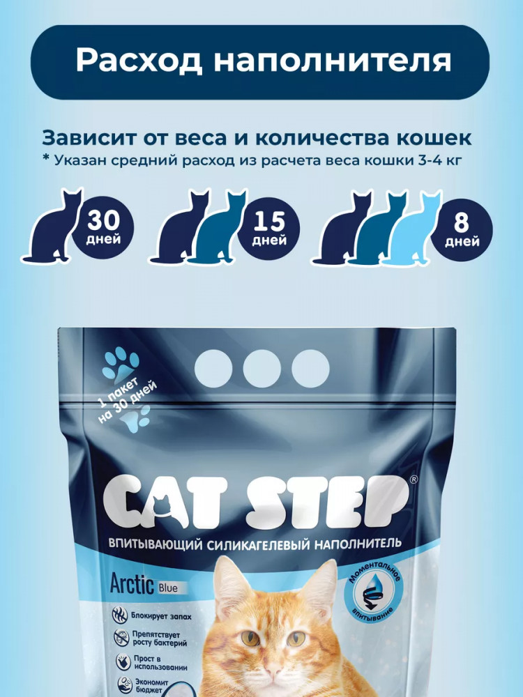 • наполнитель для кошачьего туалета Cat Step Blue с цветными синими гранулам, 3.8 л — 1 шт.;