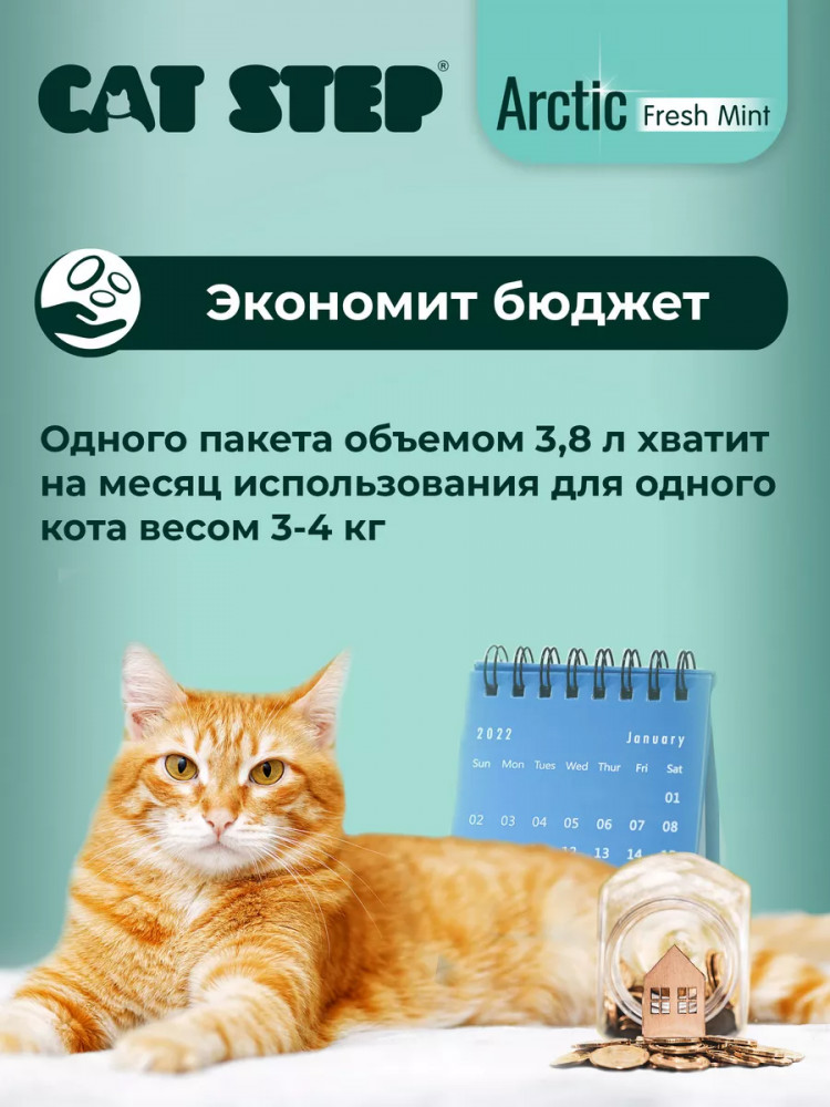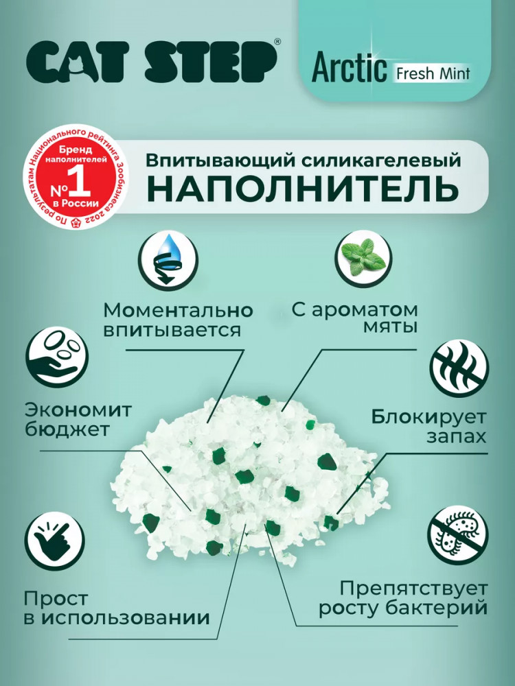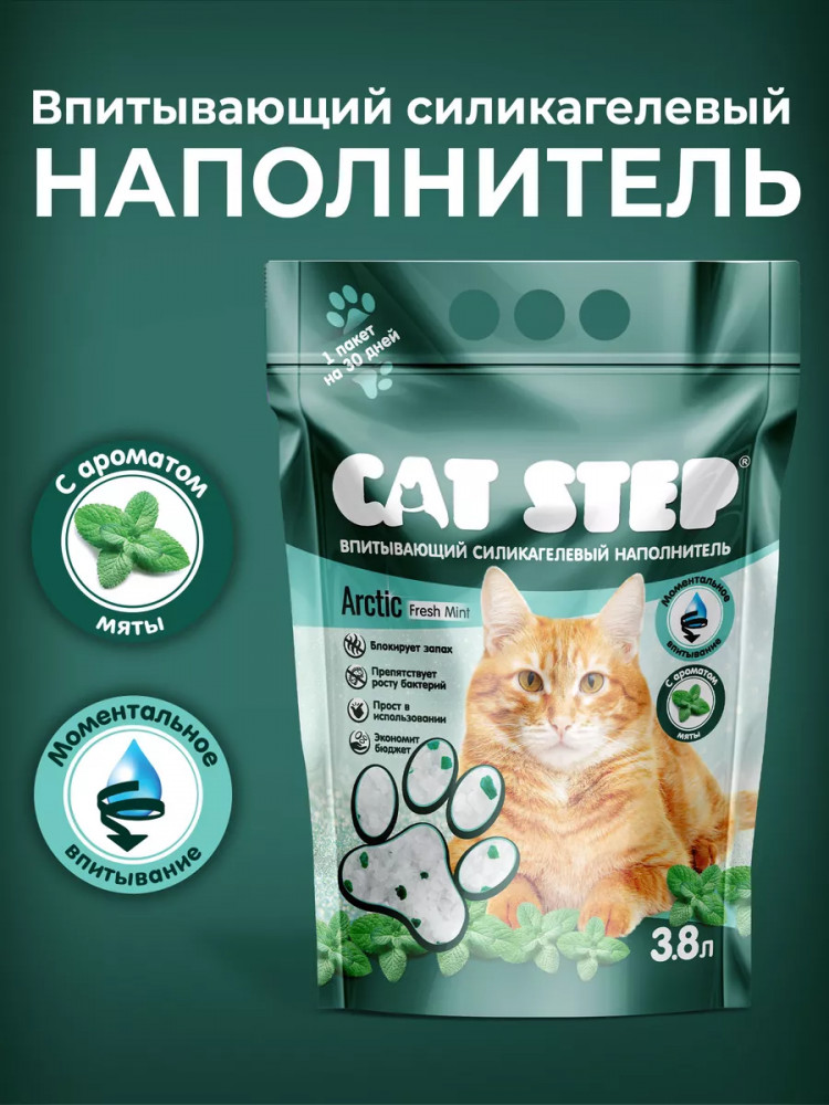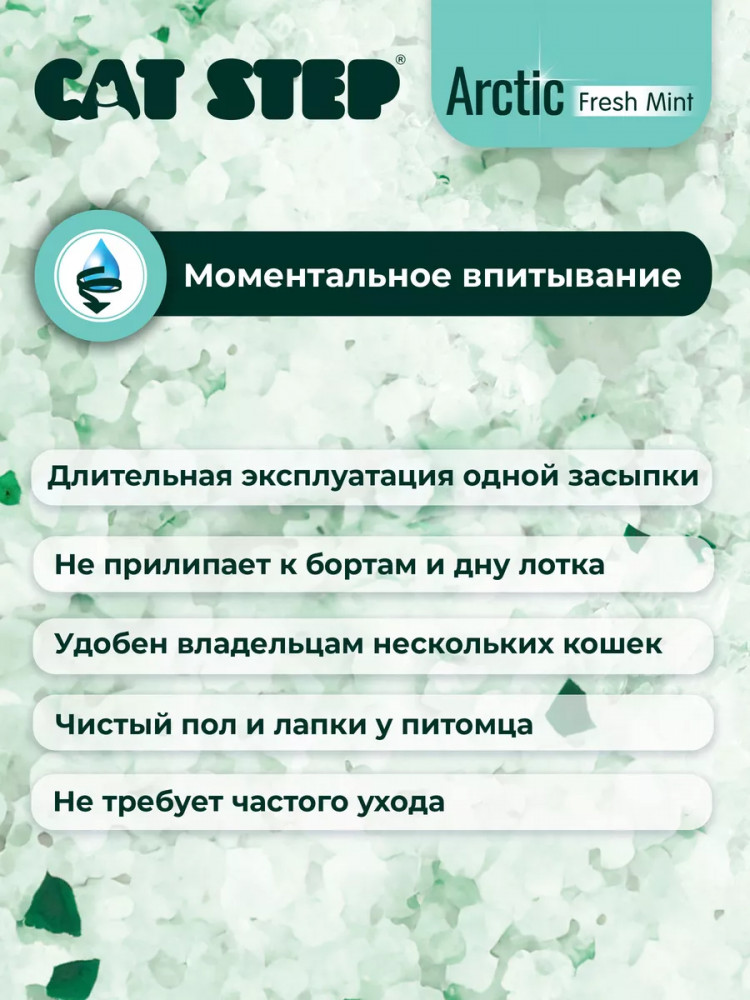 • наполнитель для кошачьего туалета Cat Step Arctic Fresh Mint с цветными зелеными гранулами и ароматом мяты 3.8 л — 1 шт.