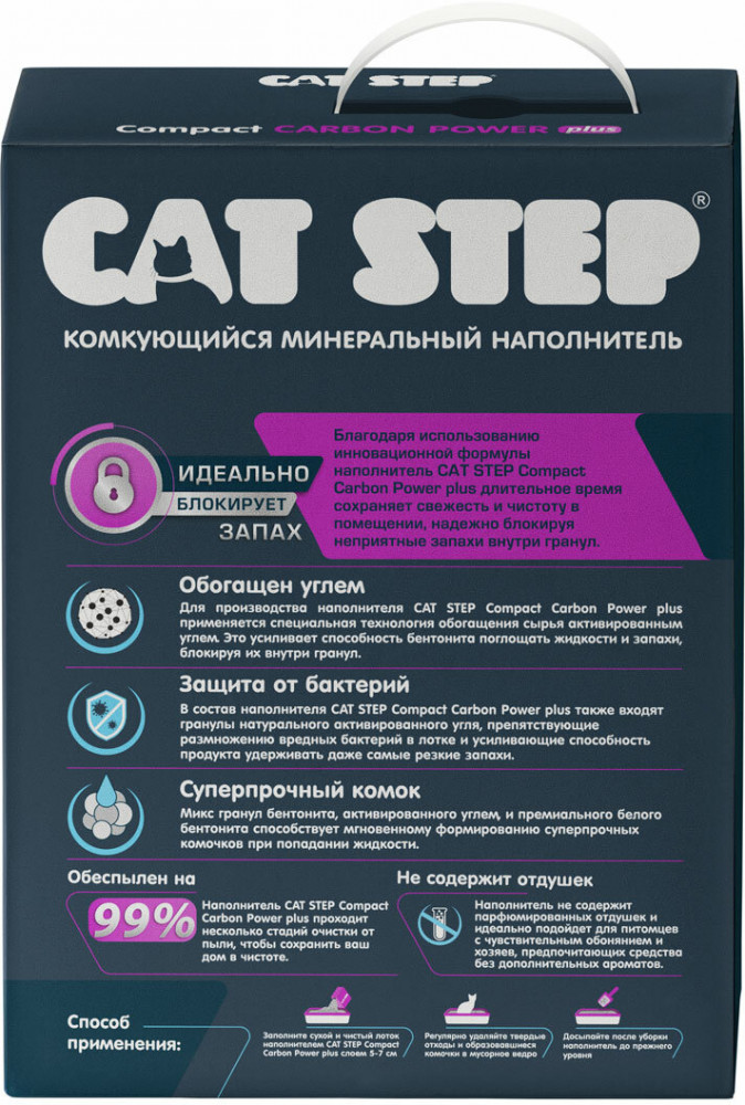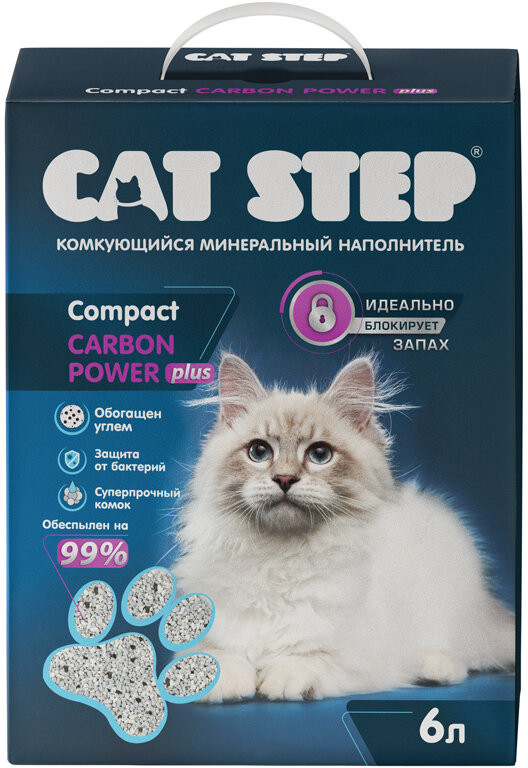 Cat Step Наполнитель для кошачьего туалета комкующийся минеральный «Carbon Power Plus»
