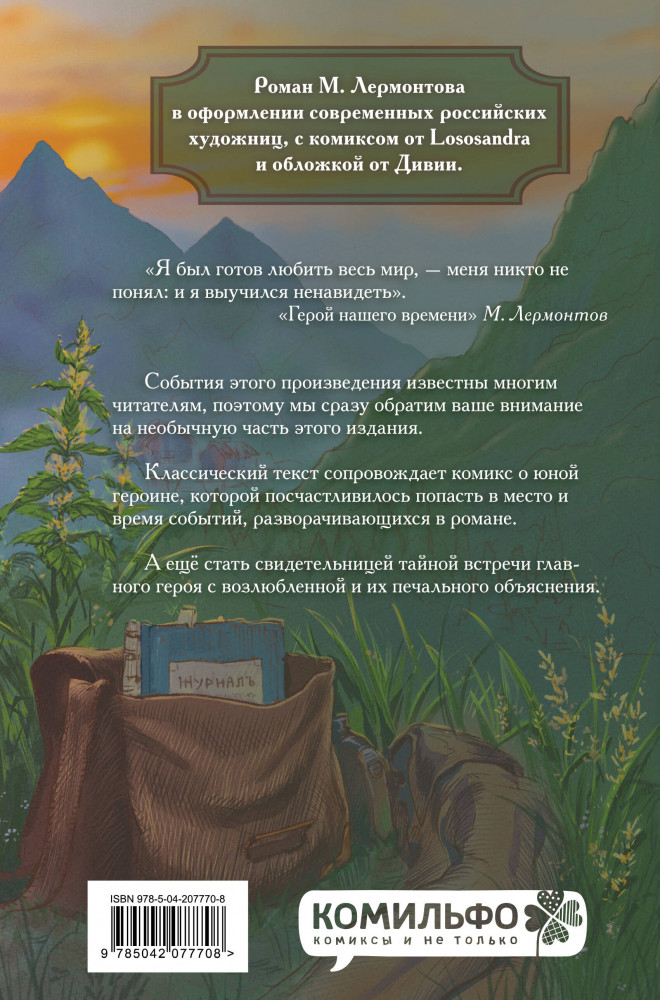 💳 Оплатить за товар можно при получении 🇰🇿 Есть бесплатная доставка по Казахстану 🎁 Копите бонусы с каждой покупки Серия: Комильфо. Классики и комиксы Под одной обложкой — роман М. Ю. Лермонтова «Герой нашего времени» и комикс от современной художницы Lososandra! |