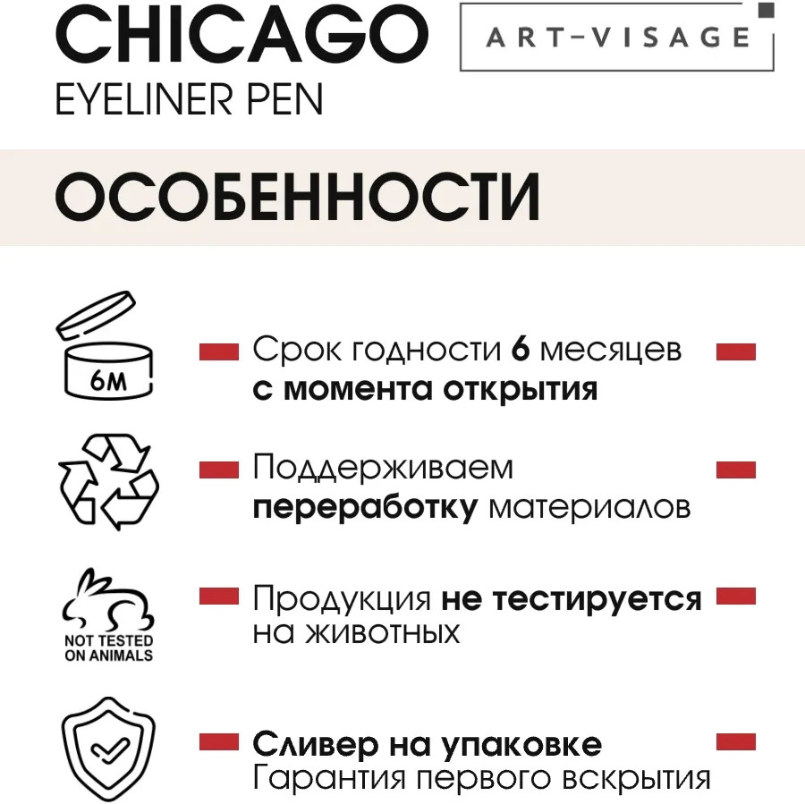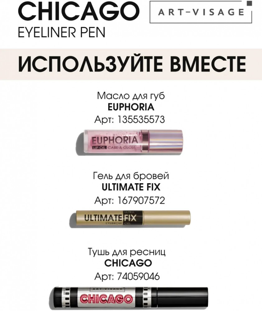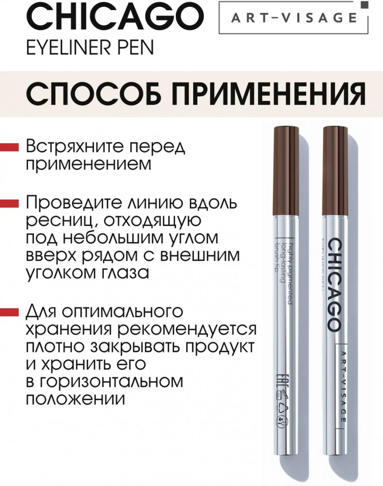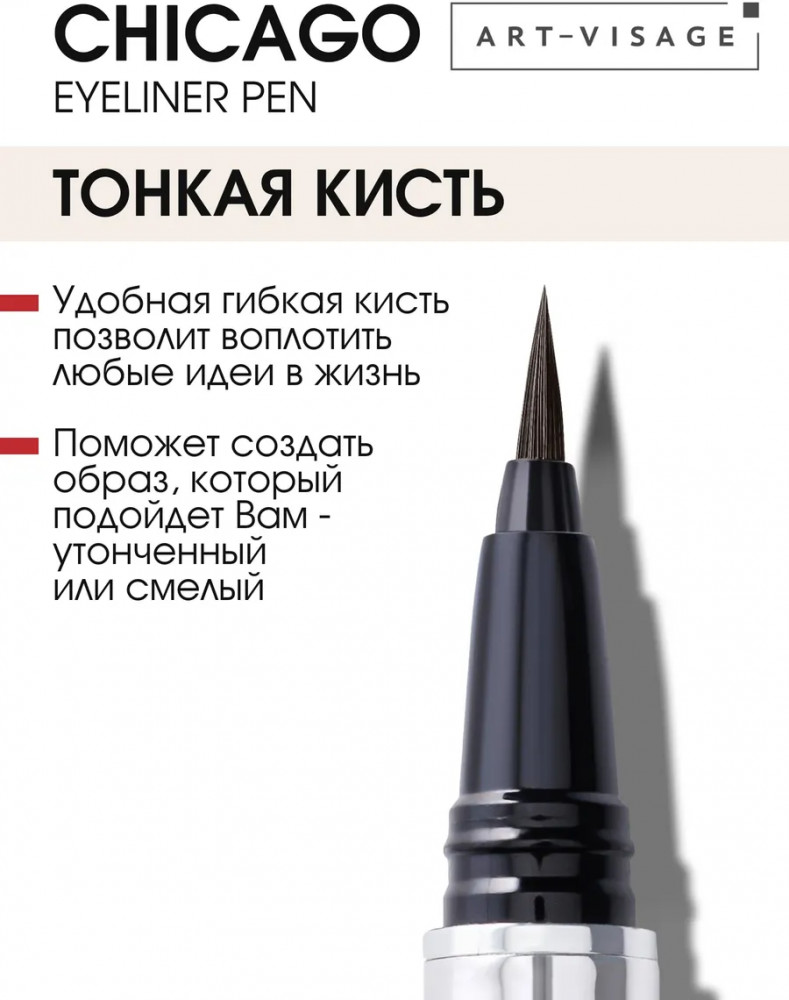 Прекрасная подводка.... рисует легко, на выходе получаются глянцевые линии. Много лет назад брала фломастер Cat Eyes, тоже от Арт Визаж и думала, что ничего лучше быть не может. Оказывается, может. И ещё удобно, что кончик не забивается, когда рисую стрелки поверх теней... но это у всех фломастеров Арт Визаж. Только Чикаго рисует ярче, чем cat eyes