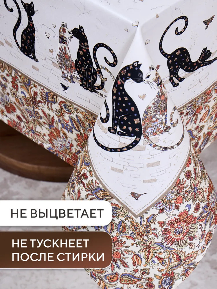 Цифровая печать позволяет перенести на изделия не только всё богатство красок и оттенков, но и придать особую прочность крашению, ткань не теряет своей яркости даже после 100 стирок. Изделия легки и не прихотливы в уходе, стирать нужно при температуре 40С, гладить при температуре от 110-170С с отпариванием, но нельзя подвергать хлорному отбеливанию. Для удобства эксплуатации на ряд изделий, такие как фартуки, скатерти, дорожки, может наноситься водогрязеотталкивающая пропитка которая не влияет на внешний вид изделия, но позволяет избежать сильного загрязнения при использовании.
