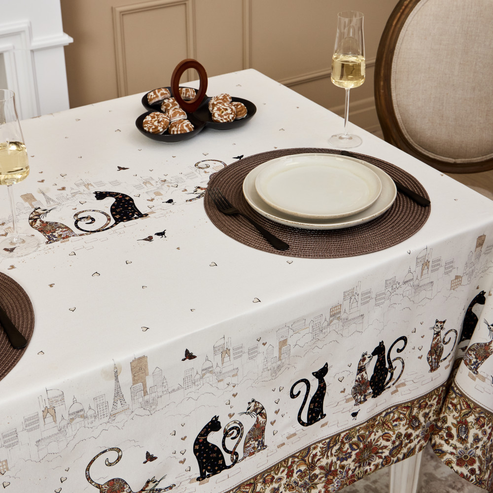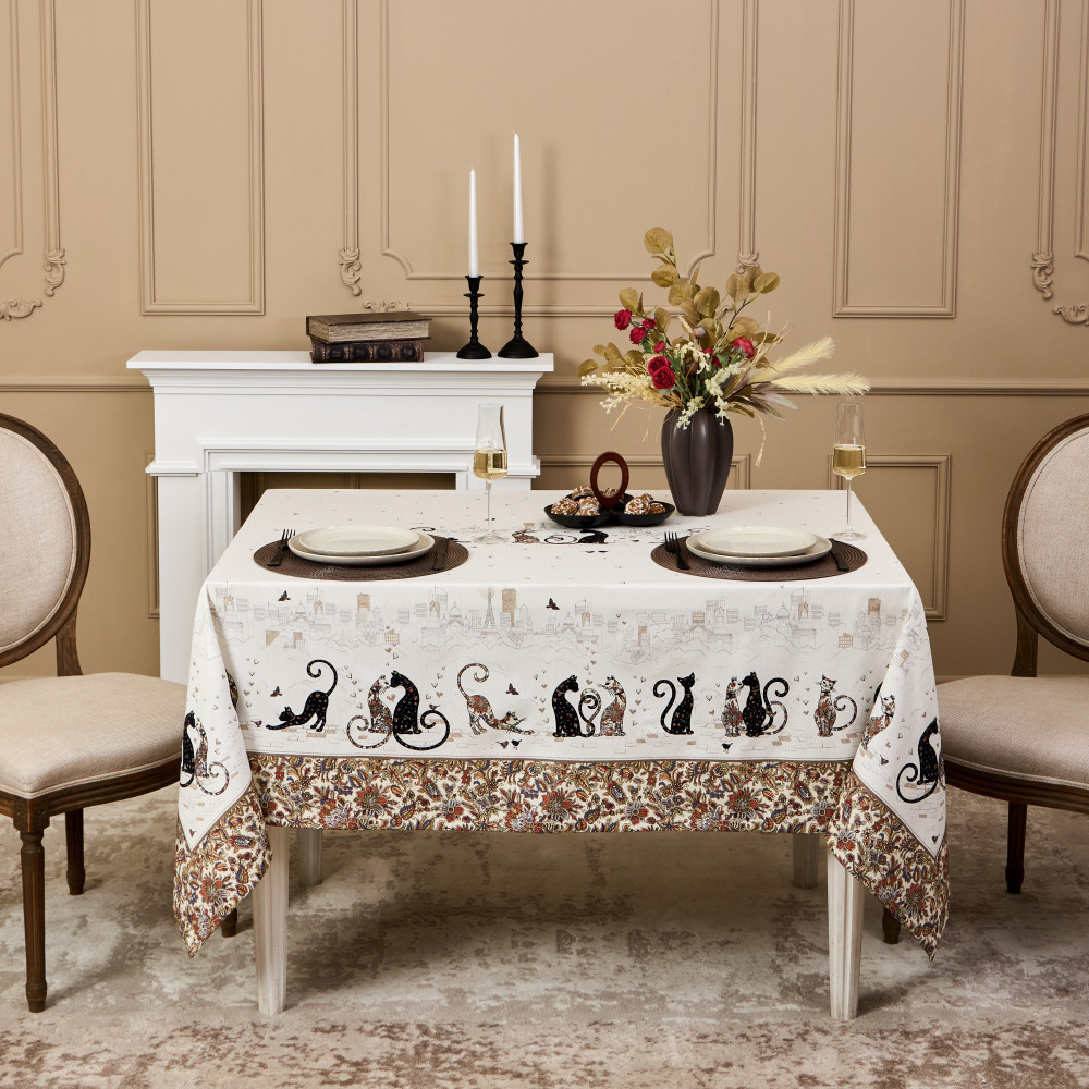 Особым направлением бренда «Santalino», является изготовление столового белья (скатерти , салфетки, дорожки (раннер), плейсметы, полотенца, фартуки) , по эксклюзивным дизайнам наших художников, воплощённых в цифровой печати, на современном оборудовании. Для пошива изделий используются только натуральные материалы 100% хлопок , плотность ткани составляет 190 г/м², она имеет приятную структуру в мелкий рубчик и называется твил, отличается хорошей капелярностью (впитываемость влаги), драпируемостью, износостойкостью, ткань проходит процесс каландрирования, что делает её более плотной и придаёт лёгкий атласный блеск, предотвращает образование так называемых «катышек» т.е уменьшается пилингуемость ткани.