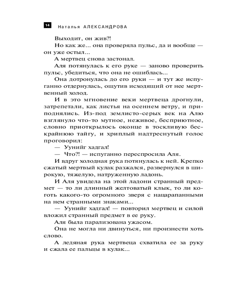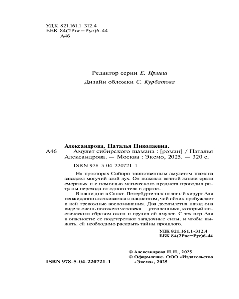 💳 Оплатить за товар можно при получении 🇰🇿 Есть бесплатная доставка по Казахстану от 1 дня 🎁 Копите бонусы с каждой покупки Серия: Артефакт & Детектив (Новое оформление) На просторах Сибири таинственным амулетом шамана завладел могучий злой дух. Он пожелал вечной жизни среди смертных и с помощью магического предмета проводил ритуалы перехода от одного тела в другое... В наши дни в Санкт-Петербурге талантливый хирург Аля неожиданно сталкивается с пациентом, чей облик пробуждает в ней тревожные воспоминания. Два десятилетия назад она видела очень похожего человека — утопленника, который мистическим образом ожил и вручил ей амулет. С тех пор Аля в опасности: ее подстерегают загадочные силы, и чтобы выжить, ей необходимо раскрыть тайны прошлого. |