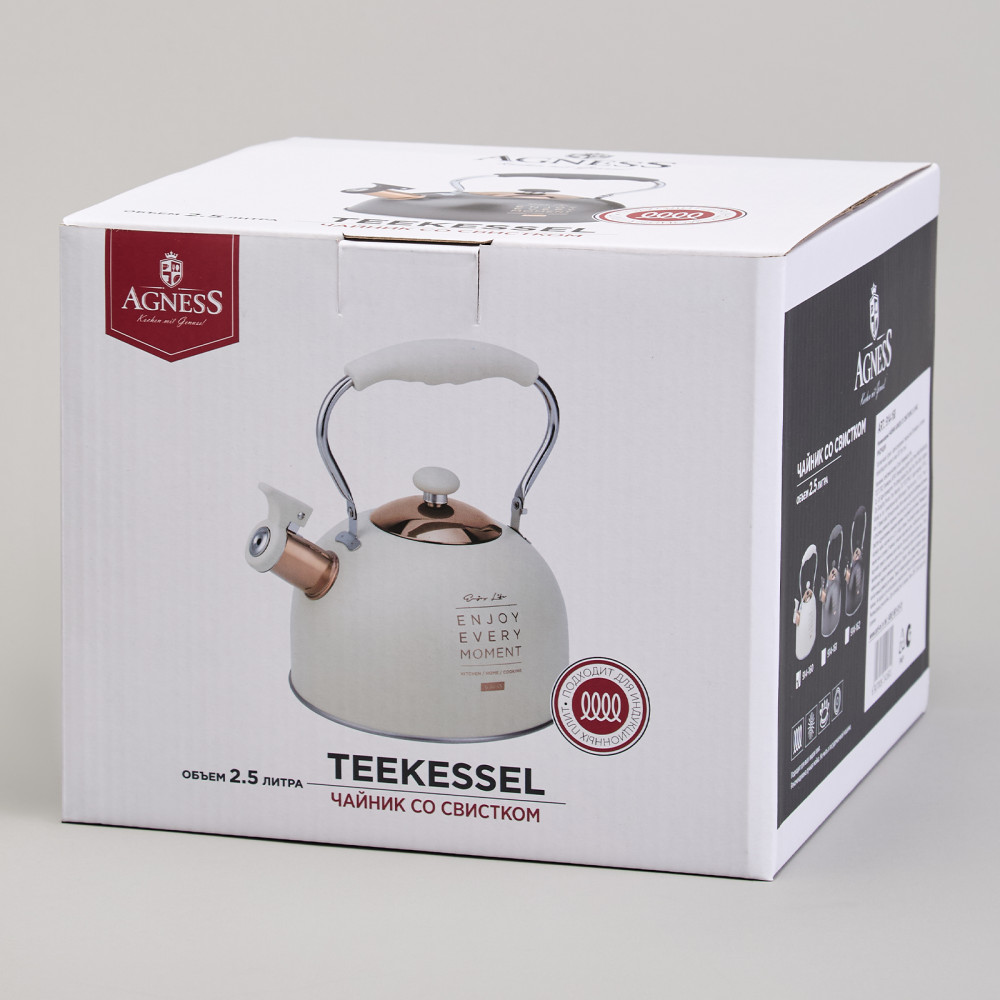 • благодаря внешнее жаропрочному покрытию и стильному дизайну чайник Agness украсит любую кухню;