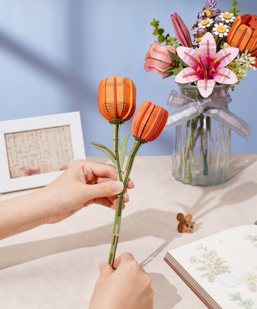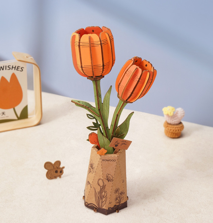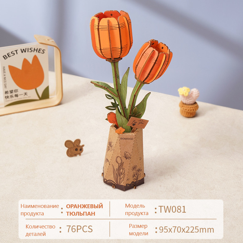 Деревянный 3D конструктор «Оранжевый Тюльпан»+75