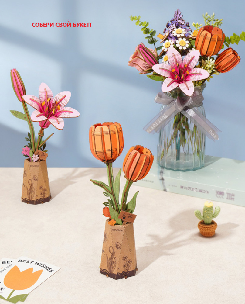 💳 Оплатить за товар можно при получении 🇰🇿 Есть бесплатная доставка по Казахстану от 1 дня 🎁 Копите бонусы с каждой покупки Цветы — отличный способ выразить любовь и добрые пожелания людей! Вы можете создать душевный цветочный подарок своими руками и удивить своих близких с помощью конструктора Rowood — деревянная модель цветка. |
