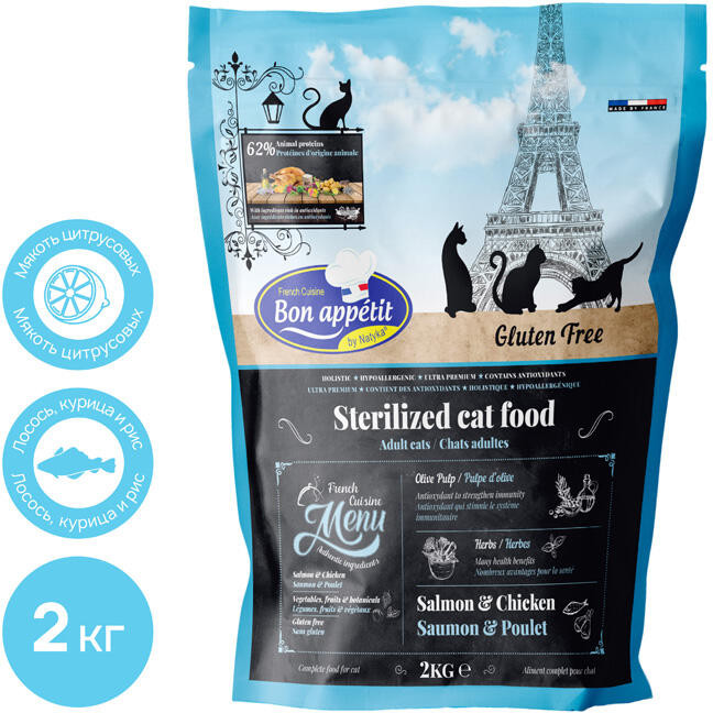 Bon Appetit Безглютеновый корм для взрослых стерилизованных кошек с курицей и лососем «Adult Sterilized. Salmon & Chicken»