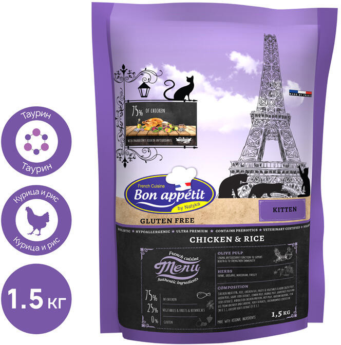 Bon Appetit Безглютеновый корм для котят с курицей и рисом «Kitten chicken & rice»