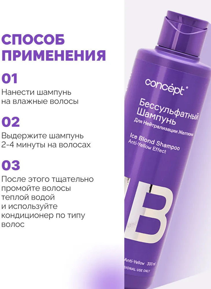 Concept Шампунь бессульфатный для нейтрализации желтизны «Ice Blond»