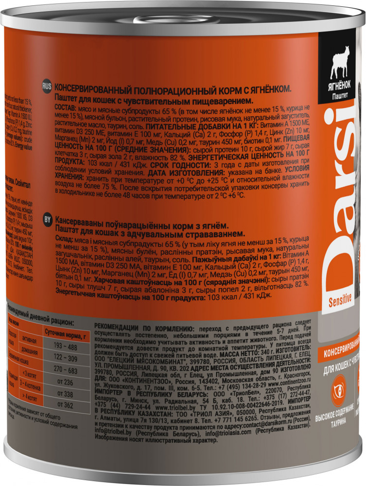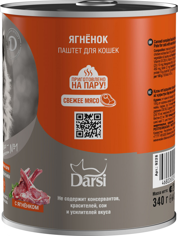 Darsi Паштет для кошек с чувствительным пищеварением «Ягненок»