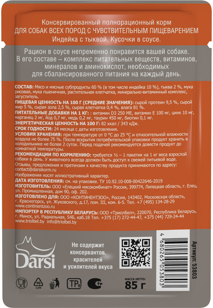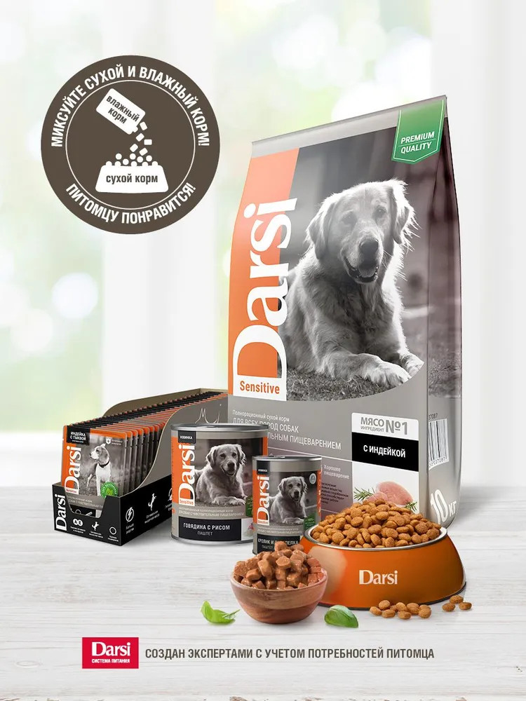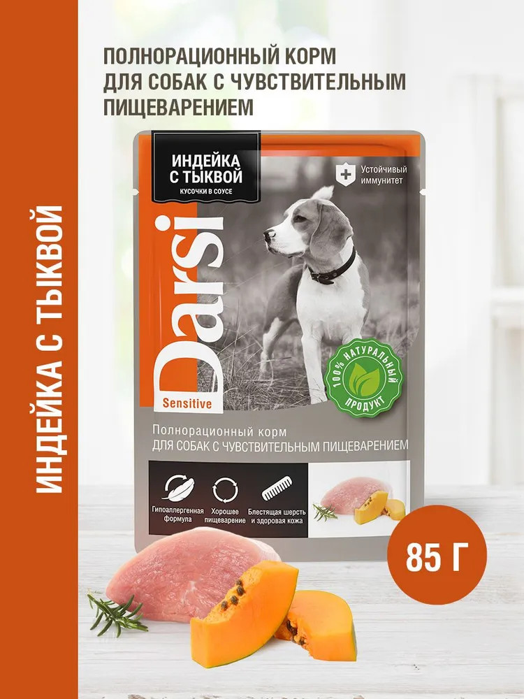 Darsi Корм для собак с чувствительным пищеварением «Индейка с тыквой. Кусочки в соусе»