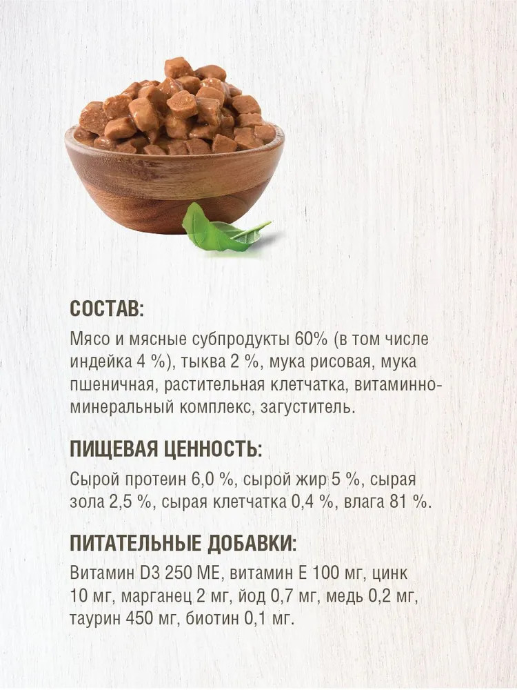 Отзывы «Корм для собак с чувствительным пищеварением «Индейка с тыквой. Кусочки в соусе»»