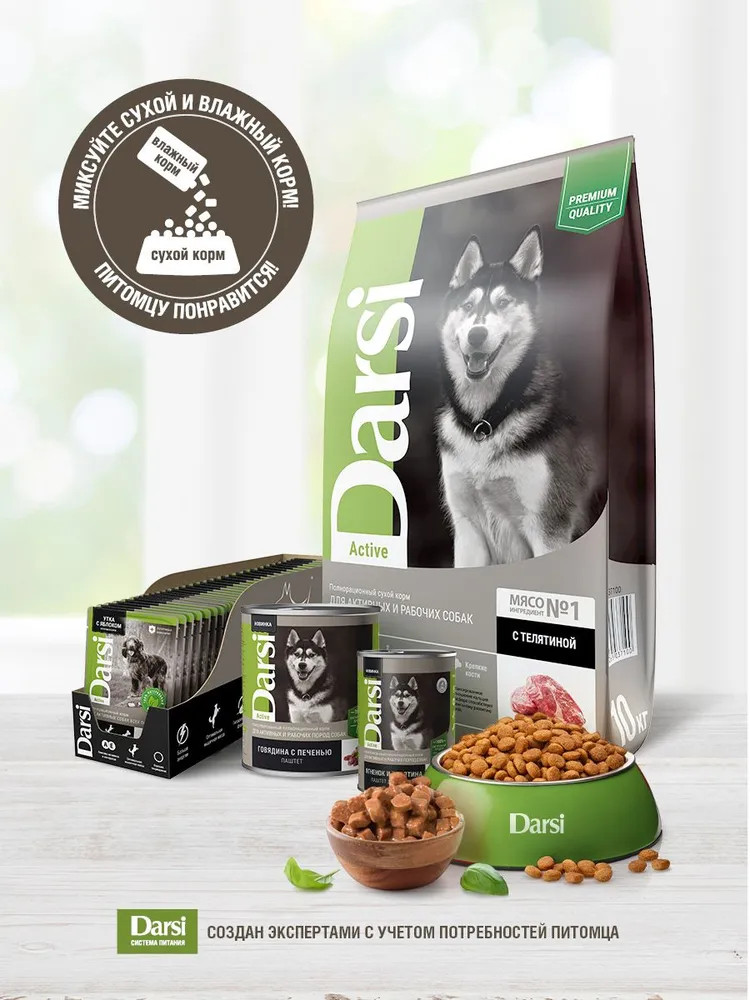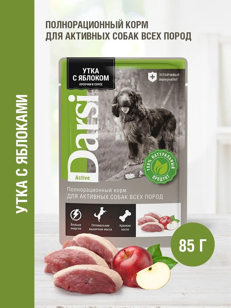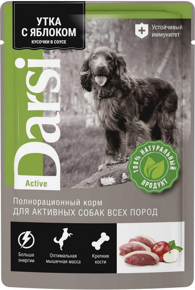 Darsi Корм для активных собак всех пород «Утка с яблоком. Кусочки в соусе»