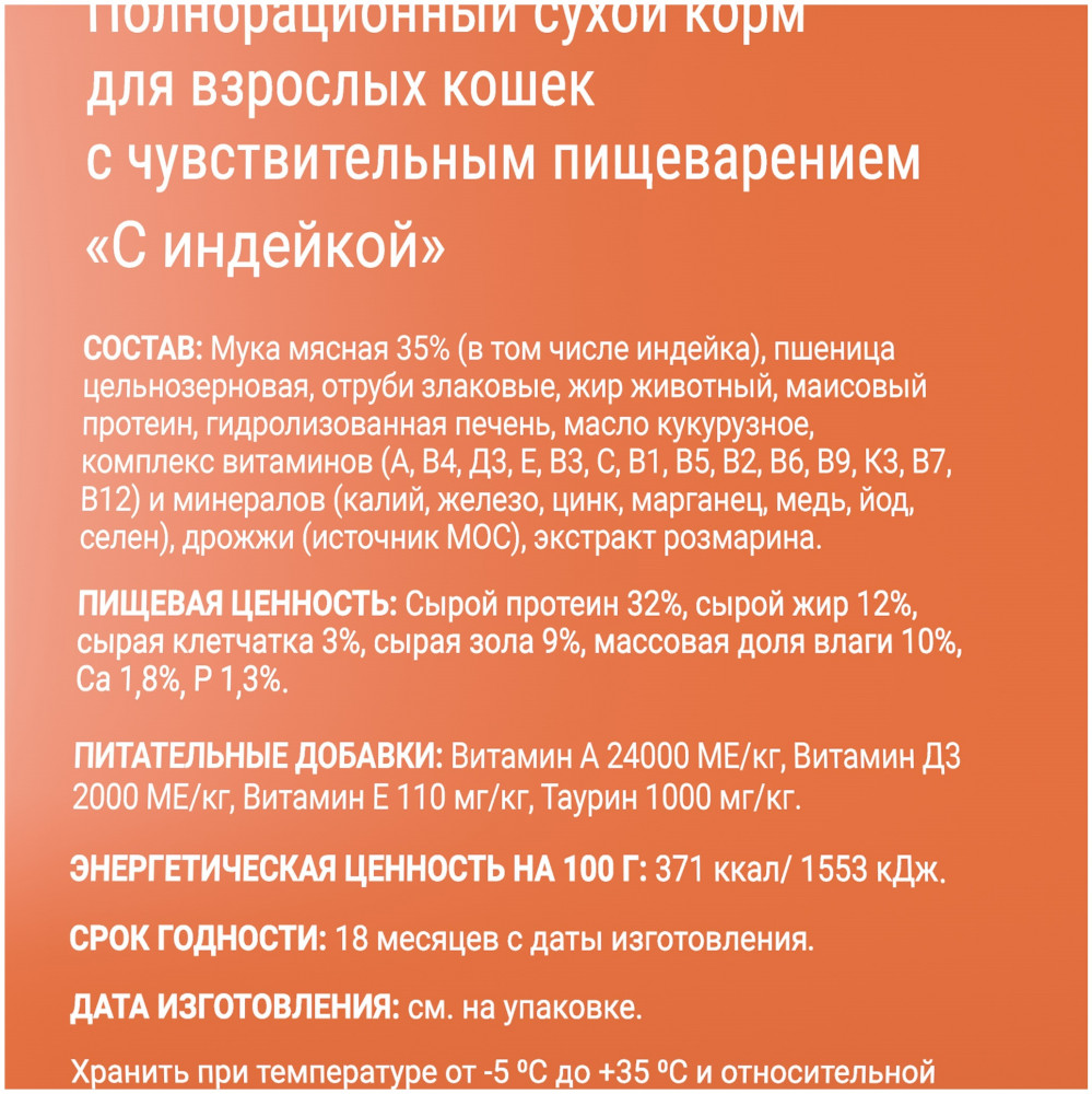 Отзывы «Корм для кошек с чувствительным пищеварением с индейкой»