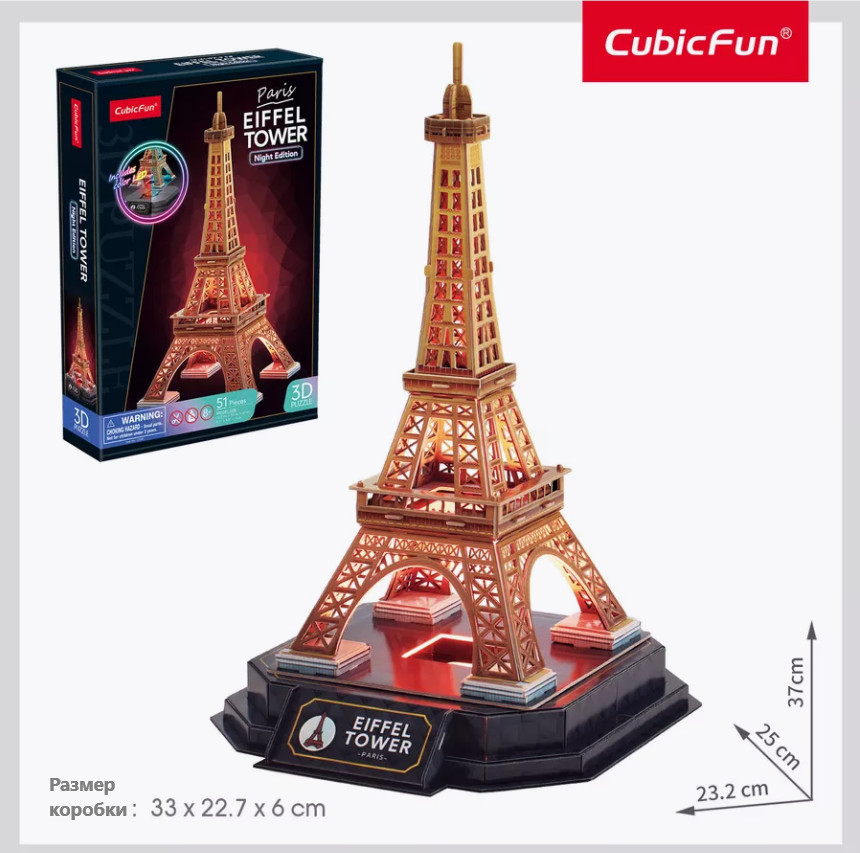 CubicFun 3D-пазл с LED-подсветкой «Eiffel Tower»+120