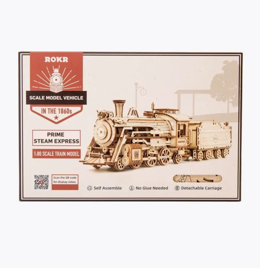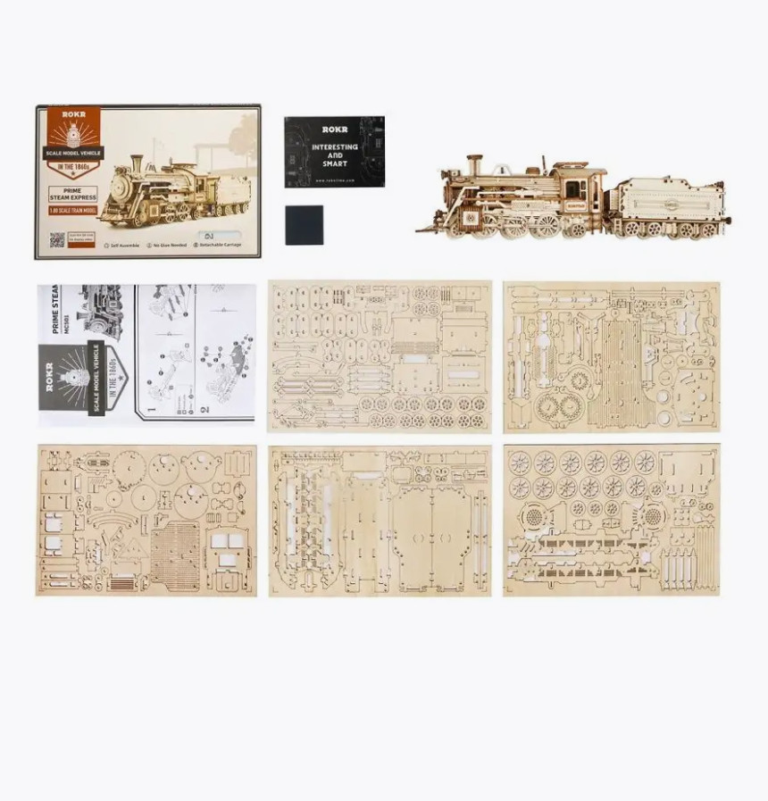 Prime Steam Express MC501 — это модель старинного паровоза 1860-х годов с высокой детализацией в масштабе 1:80. Реалистичные детали, такие как паровой свисток и колеса вала, делают его изысканным декором для вашего дома. Следуйте инструкциям в подробном Руководстве по эксплуатации, и Вы быстро соберете деревянный паровоз.