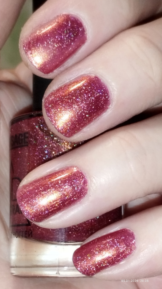 Хорошая серия лаков, мелкий глиттер, очен красиво переливается. Удобная полукругла кисть, лак легко наносится на ногти. Быстро высыхает. Держится на ногтях неплохо.